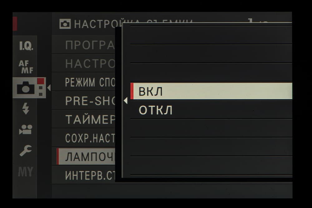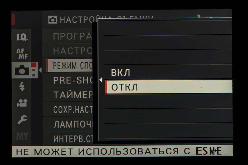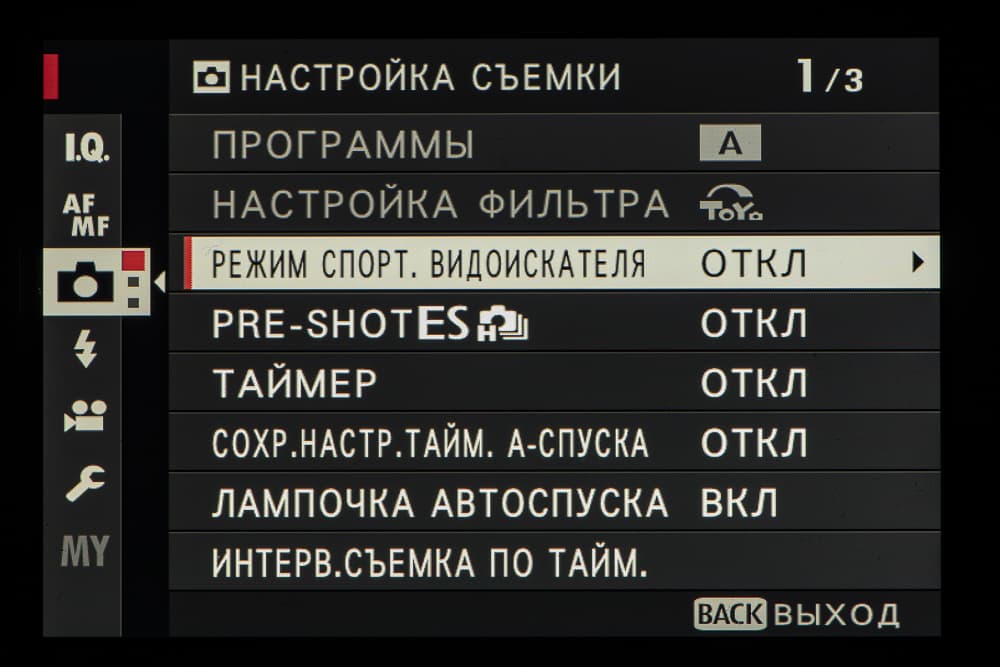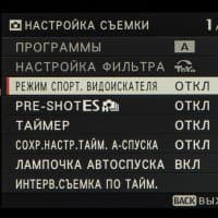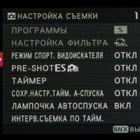 4 Pre-shot — режим предварительной съемки; запись кадров во внутренний буфер начинается при нажатии кнопки спуска затвора наполовину.