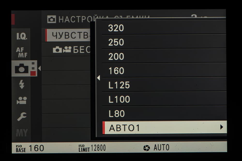 - Эквивалентная светочувствительность ISO 160—12800 (расширение до ISO 80—51200)