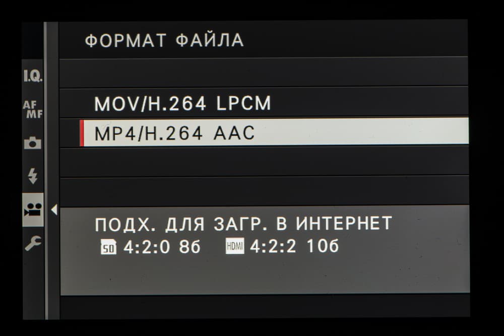 | Формат записи видео | MPEG-4 (H.264), звук Linear PCM стерео |
