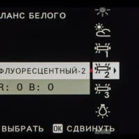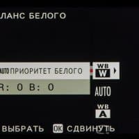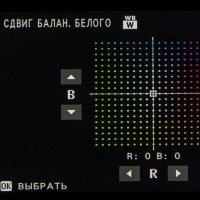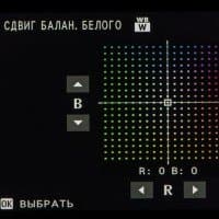 | Баланс белого | авто: приоритет белого, авто, приоритет окружающего освещения; пользовательский: три установки; прямая установка цветовой температуры от 2500 до 10000 K; пресеты: солнечно, тень, люминесцентный свет (дневного спектра, теплый белый, холодный белый), лампы накаливания, под водой |