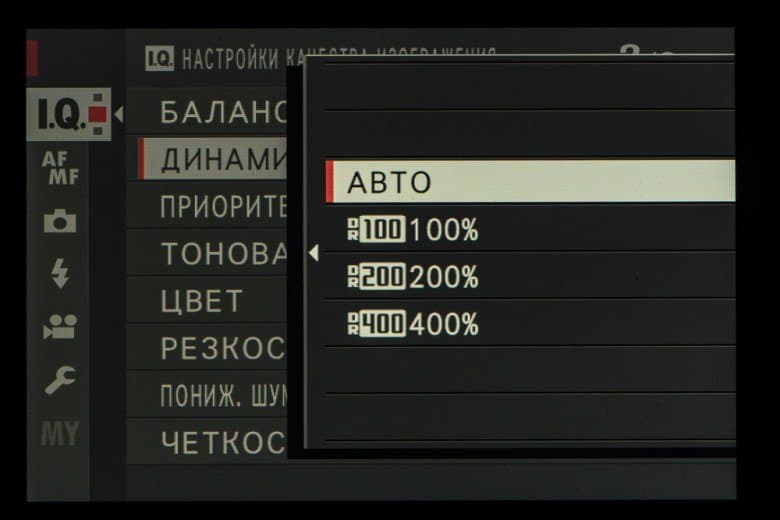 | Расширение динамического диапазона | фото: авто, 100% (без ограничений), 200% (ISO 320 и выше), 400% (ISO 640 и выше); видео: 100% (без ограничений), 200% (ISO 320 и выше), 400% (ISO 640 и выше) |
