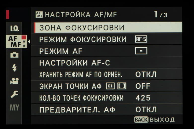 - Гибридный автофокус (АФ) с 425 фазовыми датчиками