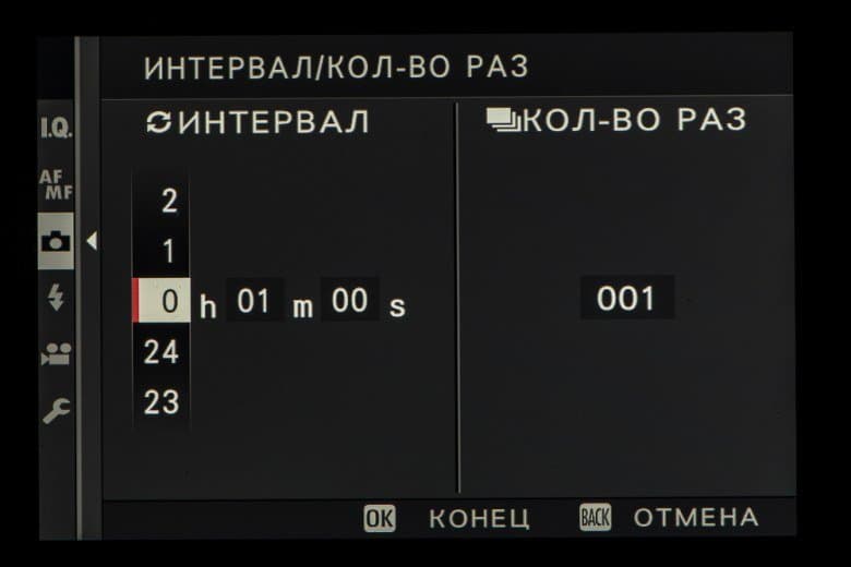 | Цейтраферная съемка | есть (установка длительности интервала, количества снимков, времени начала съемки) |