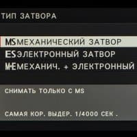 | Диапазоны выдержек в разных режимах съемки | механический затвор: «P» — 4—1/4000 с, «A» — 30—1/4000 с, «S» и «M» — 15 мин. —1/4000 с, Bulb — до 60 мин.; электронный затвор: «P» — 4—1/32000 с, «A» — 30—1/32000 с, «S» и «M» — 15 мин. —1/32000 с, Bulb — до 1 с; электронная передняя шторка: «P» — 4—1/8000 с, «A» — 30—1/8000 с, «S» и «M» — 15 мин. —1/8000 с, Bulb — до 60 мин.; механический + электронный затвор: «P» — 4—1/32000 с, «A» — 30—1/32000 с, «S» и «M» — 15 мин. —1/32000 с, Bulb — до 60 мин.; видео: 1/24 с — 1/4000 с |