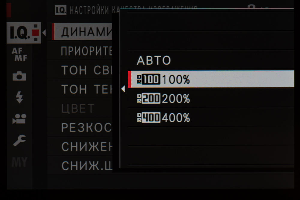 | Расширение динамического диапазона | авто, 100% 200% (при ISO 320 и выше), 400% (при ISO 640 и выше) |