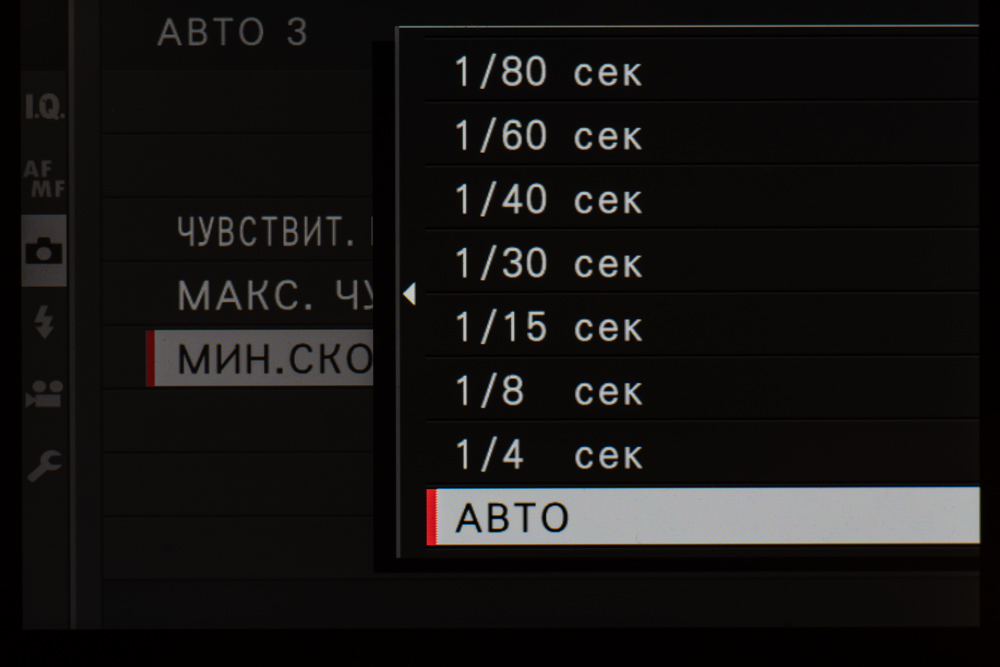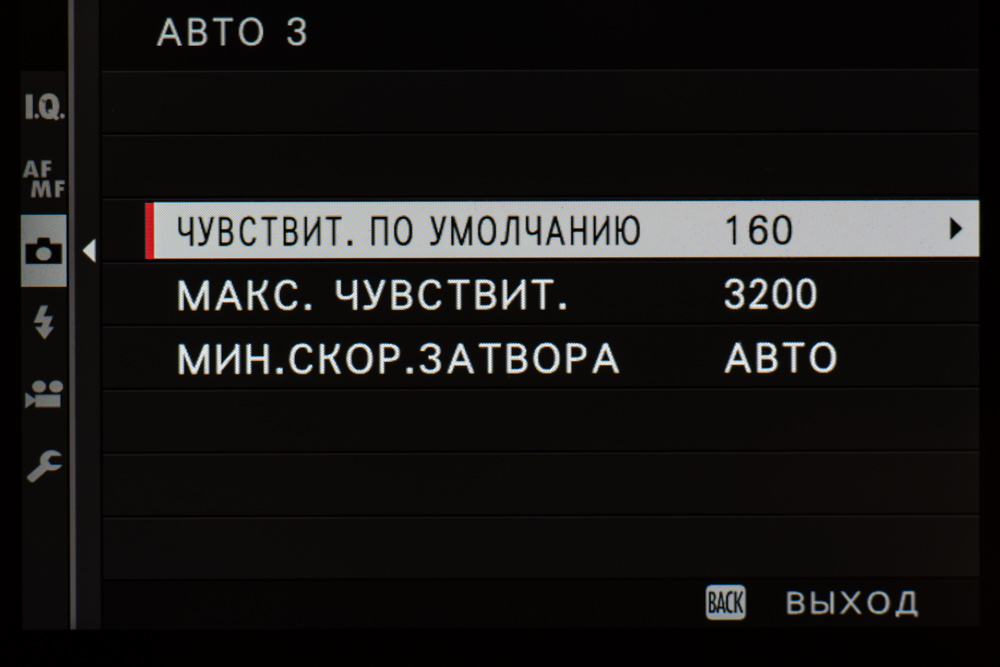 - Селектор значений эквивалентной светочувствительности (ISO)
