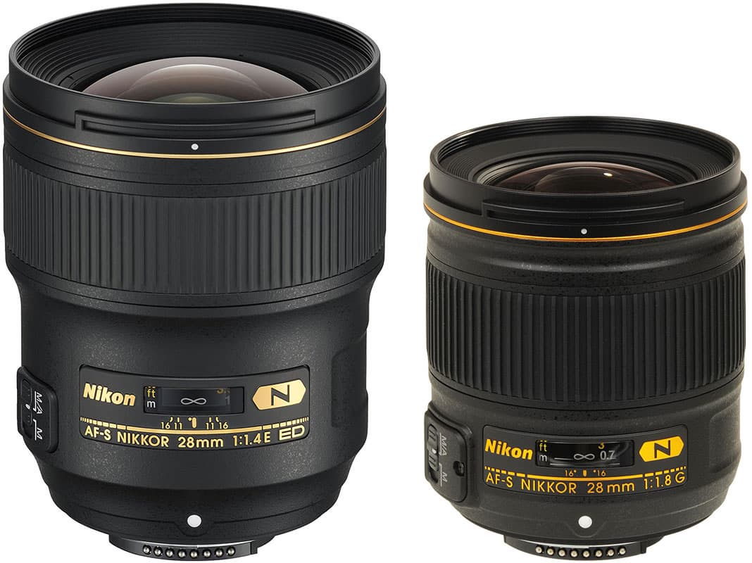 | Nikon AF-S Nikkor 28mm f/1.4E ED | Nikon AF-S Nikkor 28mm f/1.8G | |