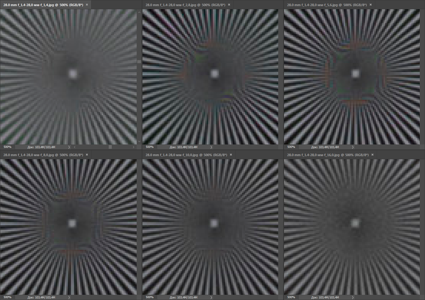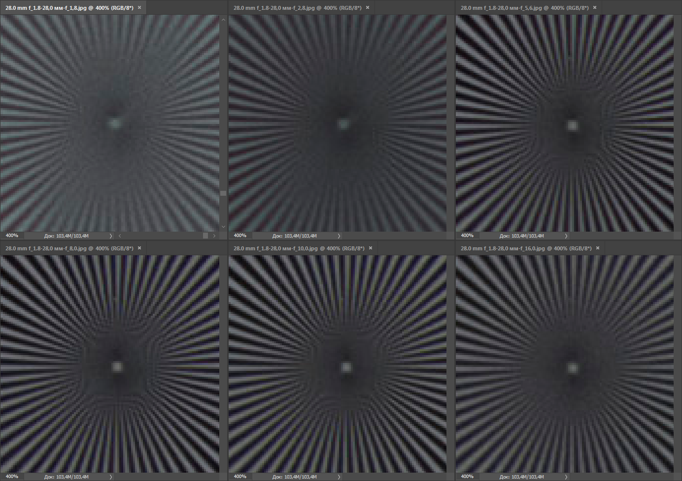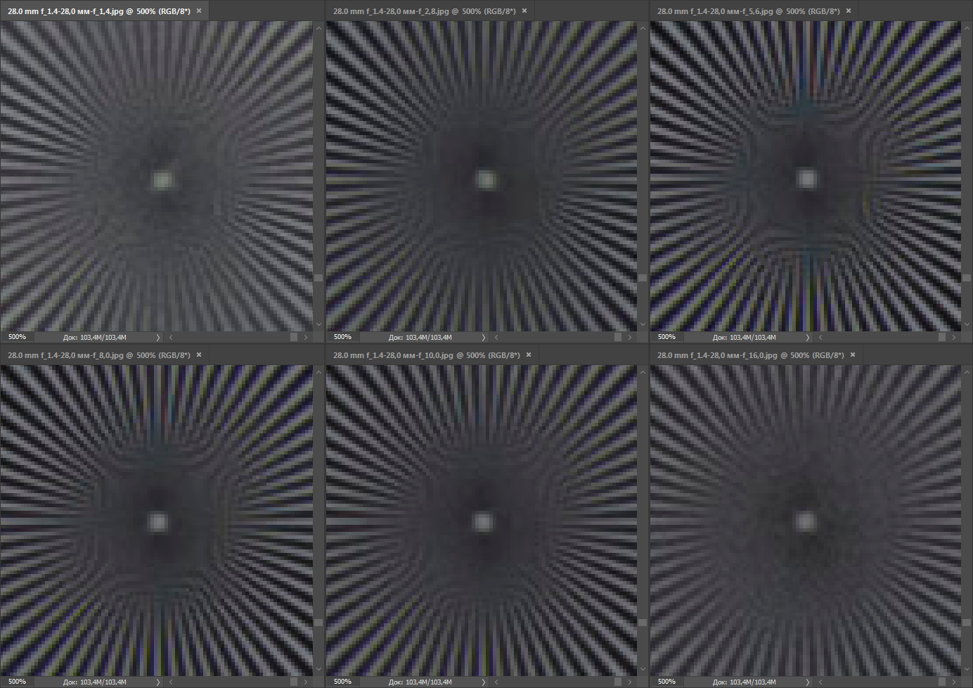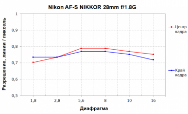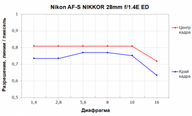 Оба объектива при максимальном раскрытии демонстрируют высокую резкость в центре кадра, а Nikon AF-S Nikkor 28mm F1.4E ED — еще и на периферии. До F4 разница в резкостных показателях сохраняется в пользу более дорогого объектива, но при более сильном диафрагмировании и вплоть до F16 эта разница почти целиком нивелируется.