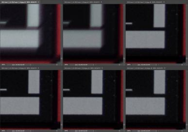 Сильная «виньетка» также обнаруживается у обоих при максимальном раскрытии. Она целиком удаляется при приложении специального профиля при постобработке. По мере диафрагмирования виньетирование значительно ослабевает уже при F2,8, а при F4 и далее практически не обнаруживается.