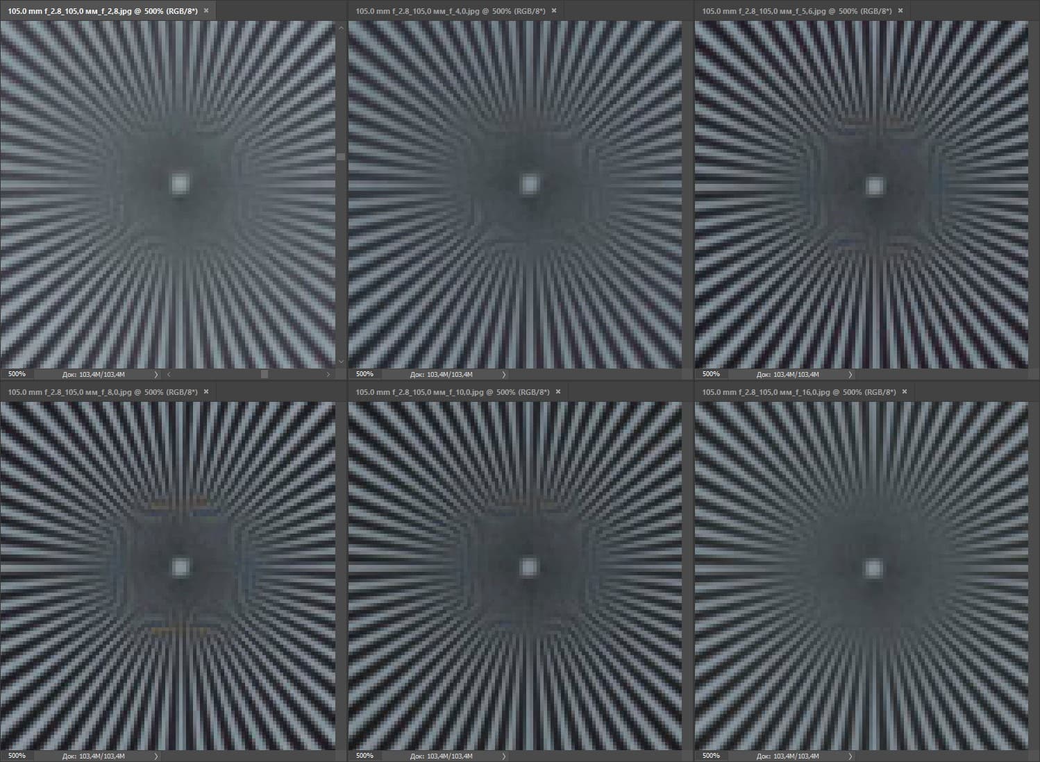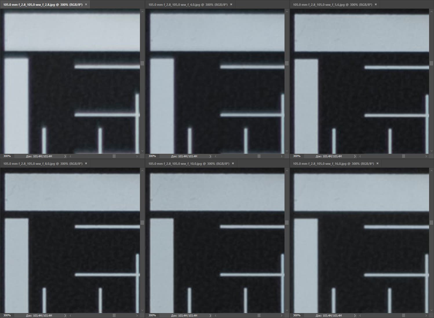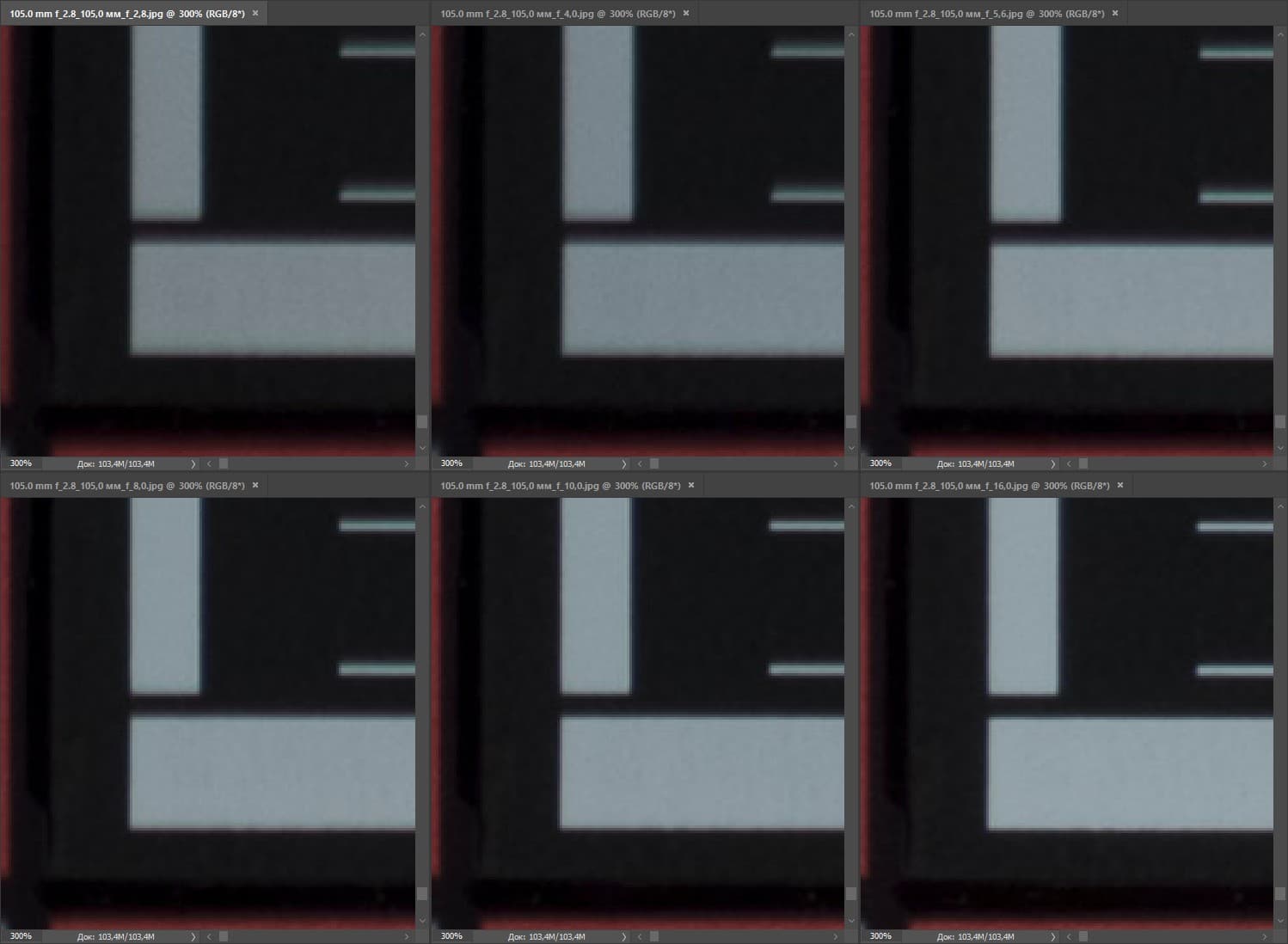 Теперь предпримем изучение свойств Nikon AF-S Nikkor 105mm f/2.8G Micro VR IF-ED в двух сериях при разных значениях диафрагмы в условиях смешанного освещения. Съемка производилась со штатива при эквивалентной светочувствительности ISO 100. Выдержка указана в подписях к снимкам. Приводим по два изображения для каждого значения диафрагмы: без приложения профиля объектива при постобработке (слева) и с профилем (справа).