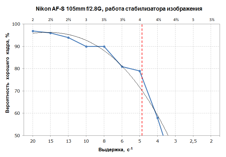 Работа стабилизатора в объективе видна невооруженным глазом. Производитель заявляет эффективность стабилизатора в 4 стопа, и наш тест это подтверждает.