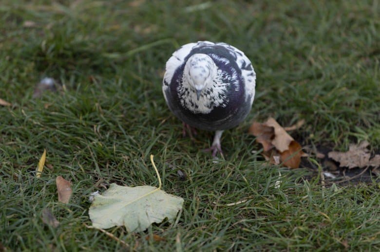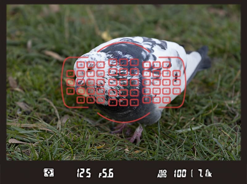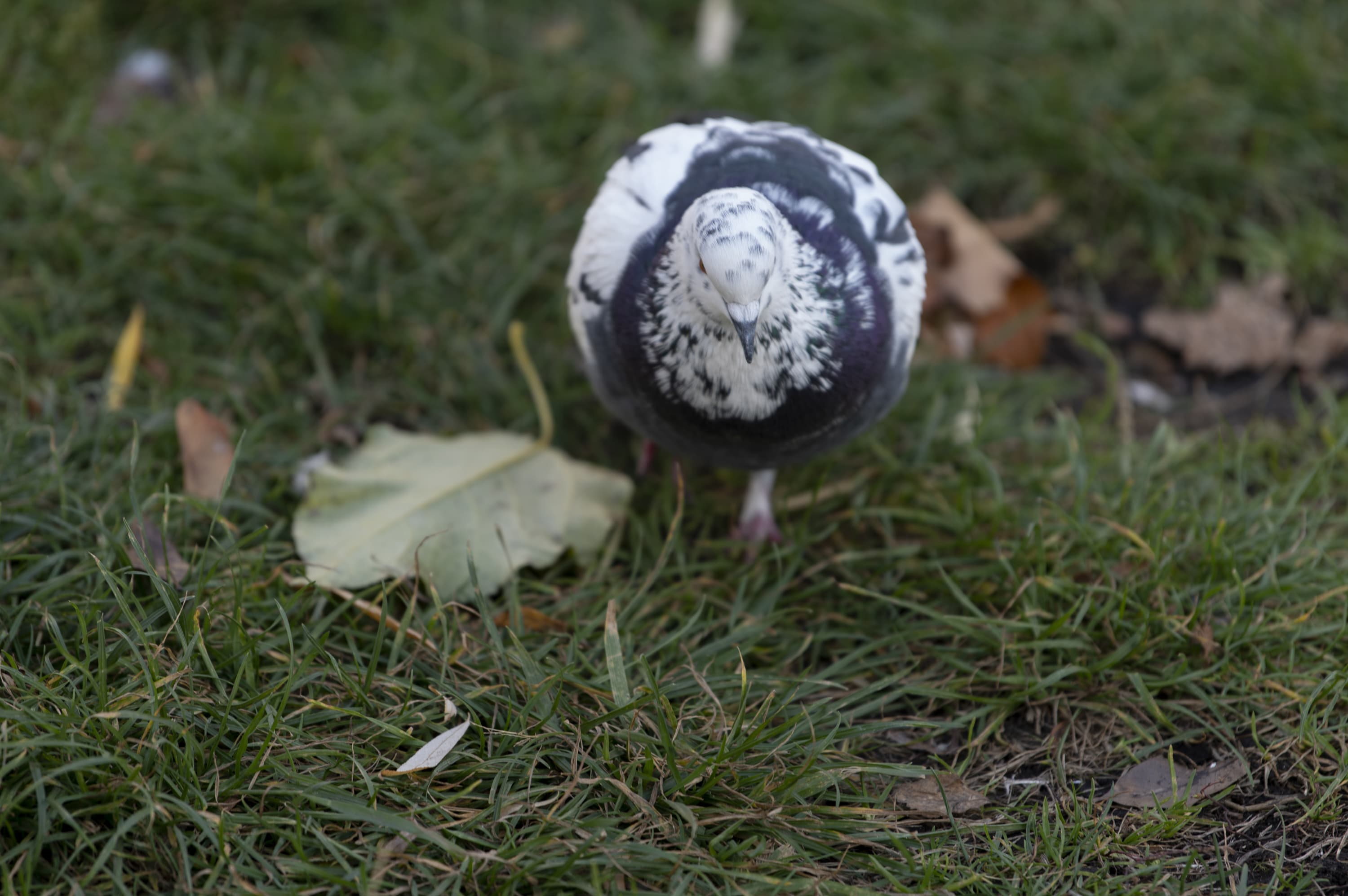 Серия 1. 22 кадра, традиционный режим съемки с работающим зеркалом. Непрерывный следящий АФ с наведением на голову голубя.