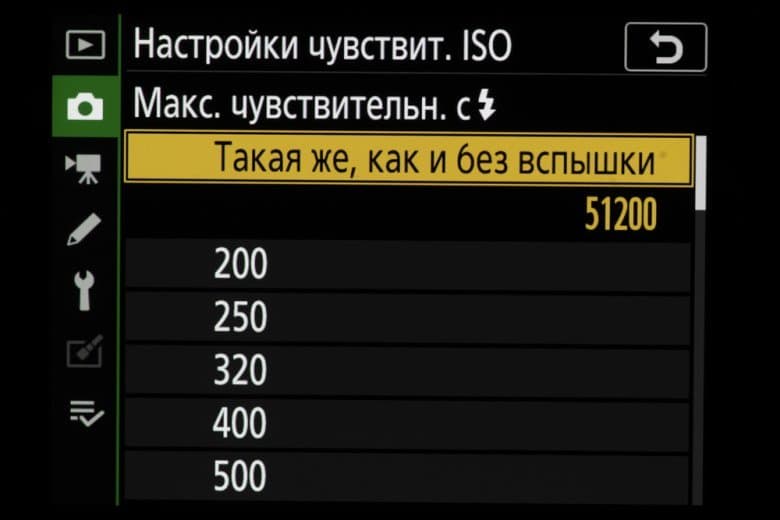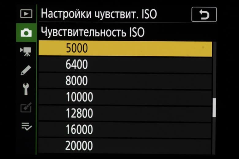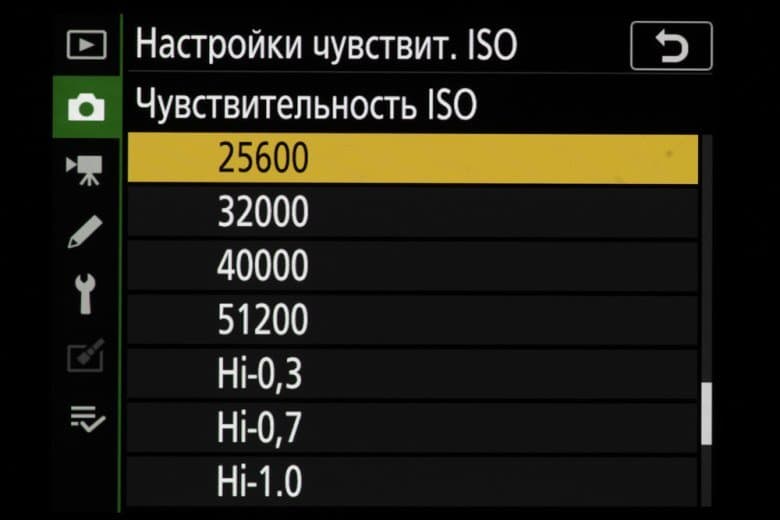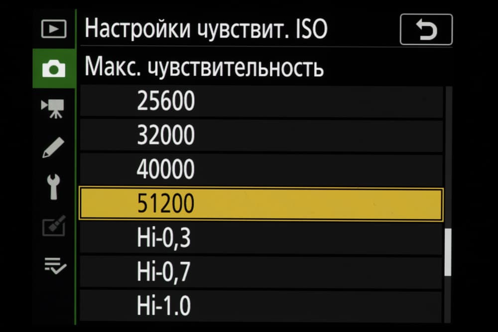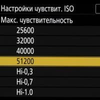 - Эквивалентная светочувствительность ISO 100—51200 (расширение до ISO 50—204800)