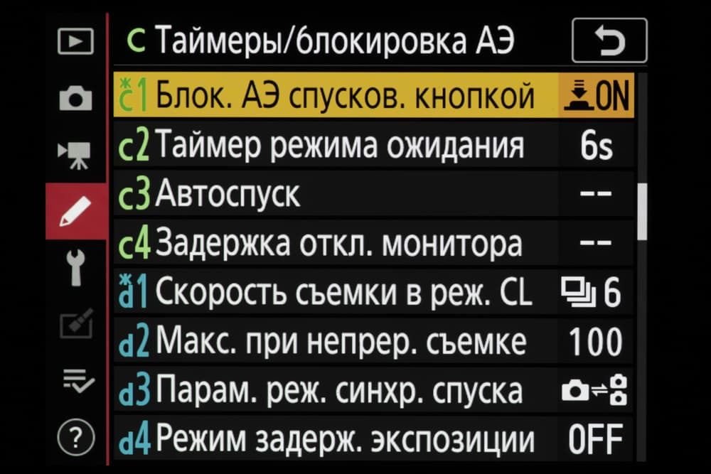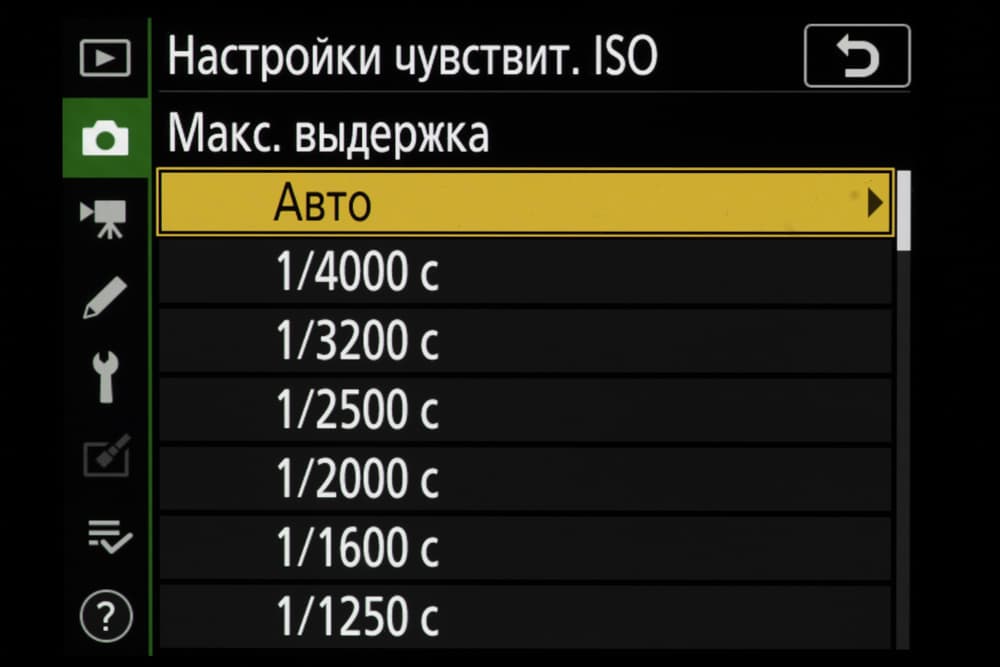 | Доступные значения выдержки | от 1/8000 с до 30 с с шагом ⅓ или ½ EV, выдержка от руки, выдержка по времени (до 900 с) |