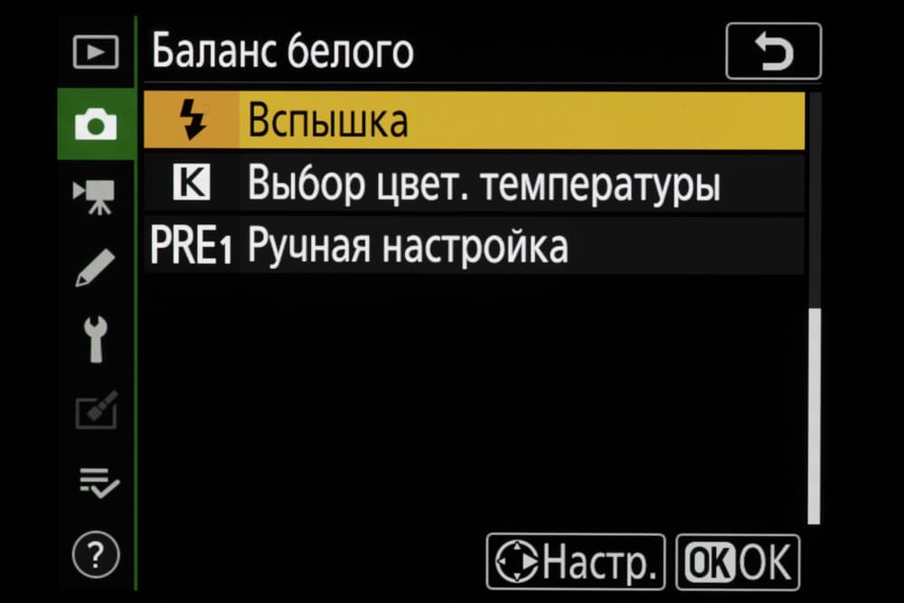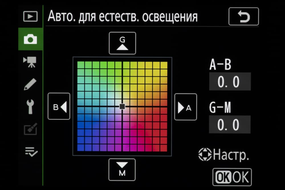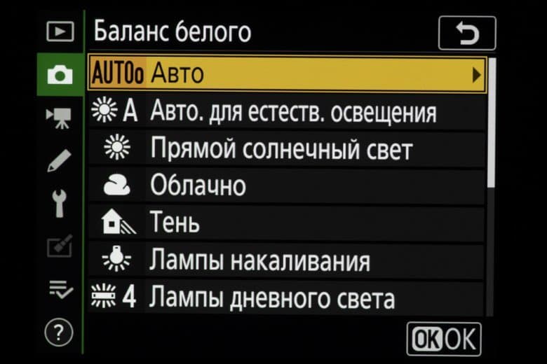 Автоматический баланс белого (АББ) работает очень хорошо. Даже в сложных условиях освещения автомат практически не допускает промахов, и это исключает необходимость ручной корректировки цветности при постобработке.