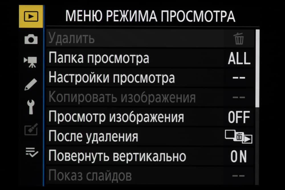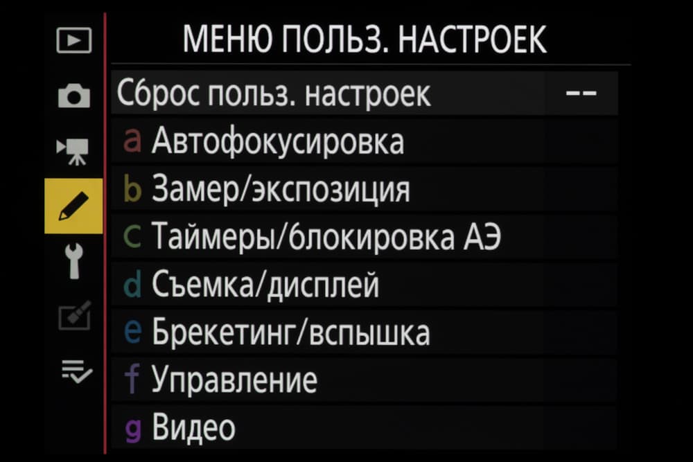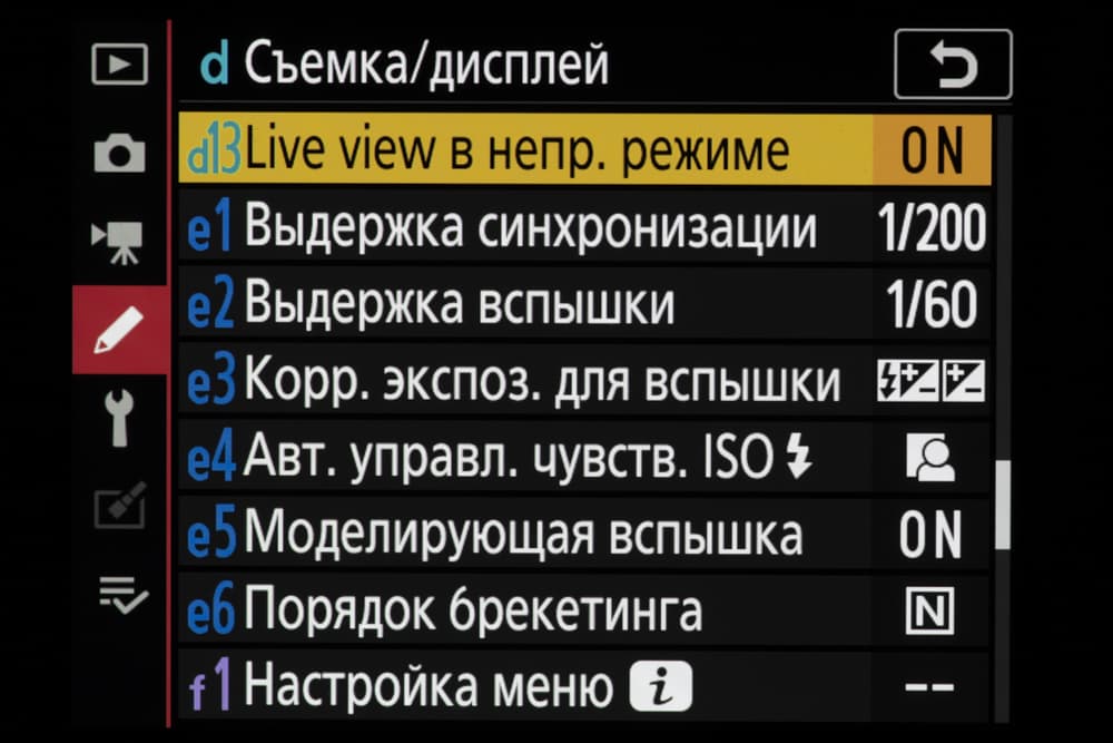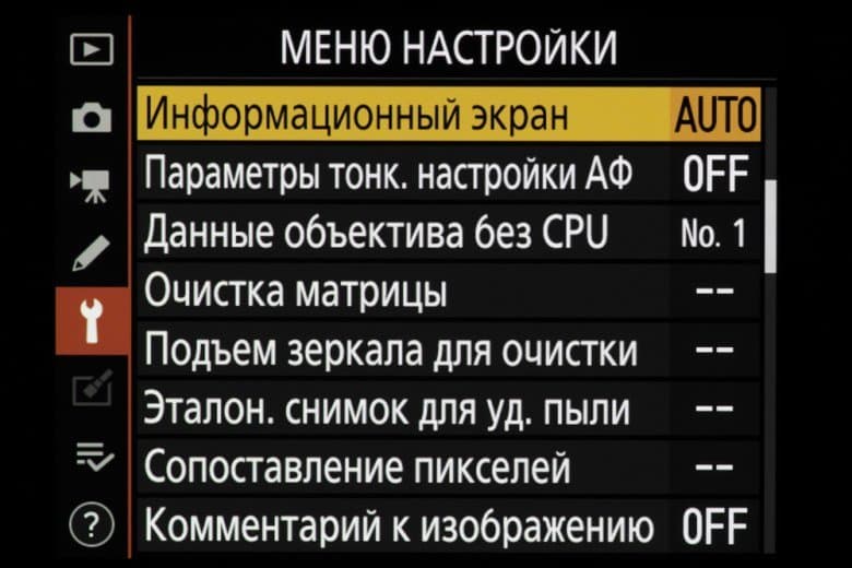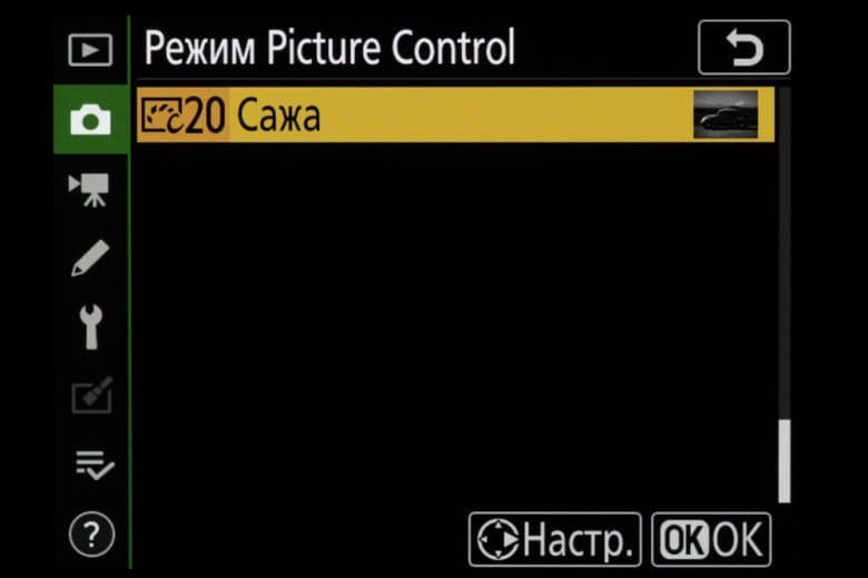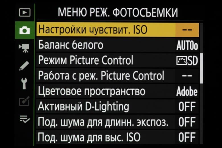| Внутрикамерная обработка изображений (Picture Control) | «Авто», «Стандартный», «Нейтральный», «Насыщенный», «Монохромный», «Портрет», «Пейзаж» и «Равномерный», творческие режимы Picture Control («Сон», «Утро», «Поп», «Воскресенье», «Мрачность», «Драматичность», «Тишина», «Выбеливание», «Меланхолия», «Чистота», «Деним», «Игрушка», «Сепия», «Синий», «Красный», «Розовый», «Уголь», «Графит», «Сажа»); возможность изменения выбранного режима Picture Control и сохранения пользовательских режимов |