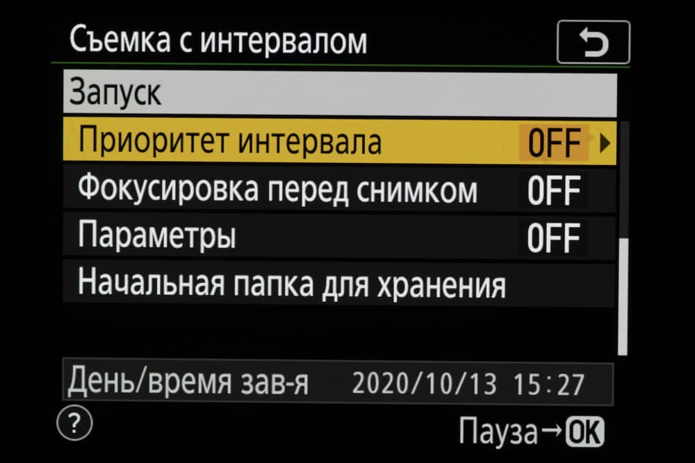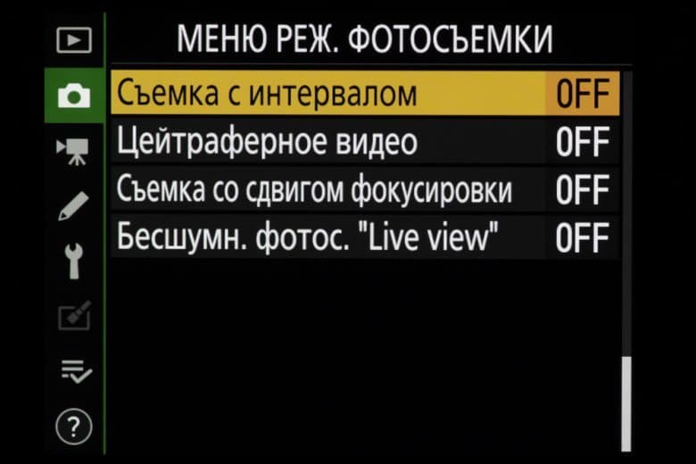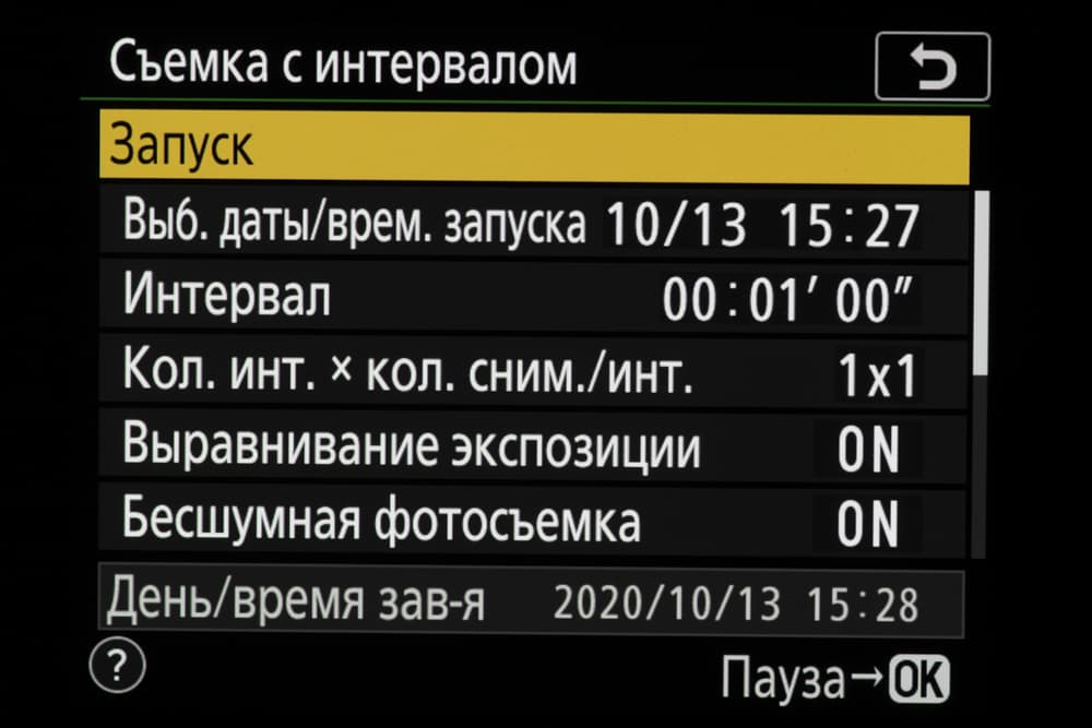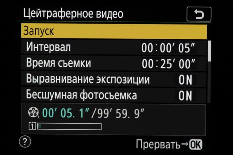 | Цейтраферная съемка | есть (установка длительности интервала, количества снимков, времени начала съемки) |