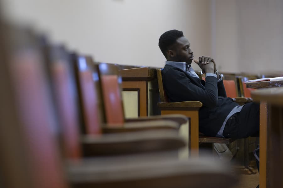 Сложности начинаются при выборе непрерывного следящего автофокуса по широкой и узкой зонам. В этой ситуации АФ стремится сосредоточиться на самом ближнем объекте. На фото ниже планировалось сделать резкой голову женщины, а автомат сместил зону резкости на ногу, согнутую в колене.