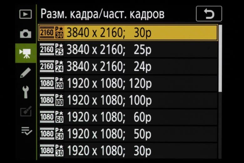 Nikon D780 позволяет записывать видео с максимальным разрешением UHD 4K (3840×2160 пикселей) при 30, 25 или 24 кадрах/с, причем съемка осуществляется без обрезки (масштабирования) изображения. Для уменьшения эффекта роллинг-шаттера можно использовать и режим DX, то есть снимать в «кропнутом» режиме с масштабированием картинки 1,5× от исходного размера.