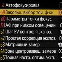 | Зоны АФ | с видоискателем: одноточечная, 9-/21-/51-точечная динамическая, 3D-слежение, групповая, автоматический выбор зоны; в режиме Live View: точечная (доступна только в режиме фотосъемки), покадровая следящая, одноточечная, динамическая (доступна только в режиме фотосъемки), непрерывная следящая, широкая область S/L, автоматический выбор зоны |
