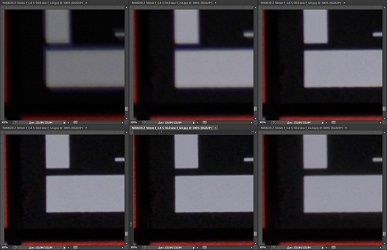 Картина MTF у Nikon AF-S Nikkor 50mm f/1.8G менее привлекательная, чем у его беззеркального соперника; это особенно заметно при воспроизведении сагиттальных структур 30 линий/мм.