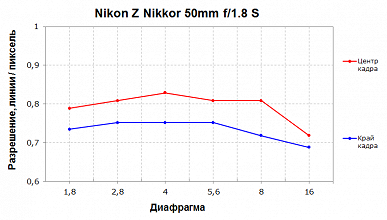 Выходит, что Nikon Z Nikkor 50mm f/1.8 S предпочтительнее использовать при максимальном и субмаксимальном раскрытии, а Nikon AF-S Nikkor 50mm f/1.8G — при диафрагмировании.