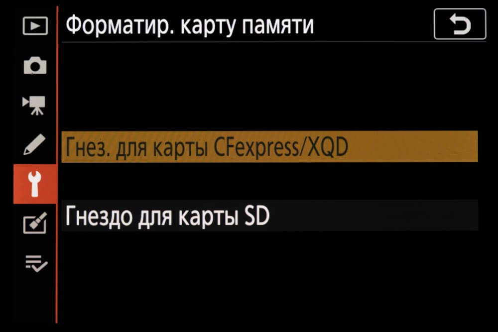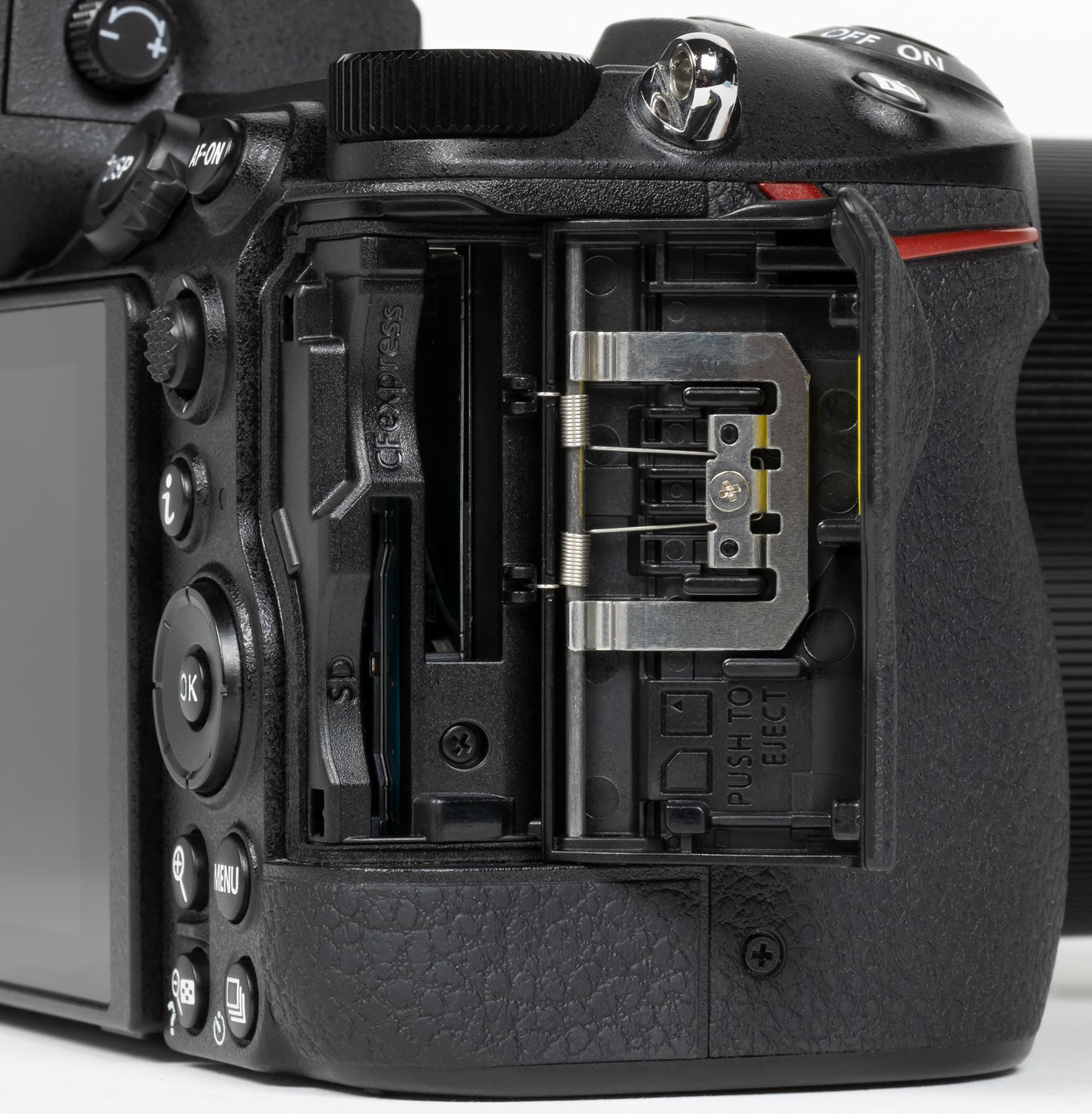 - Два слота для карт памяти, CFexpress/XQD и SD UHS-II