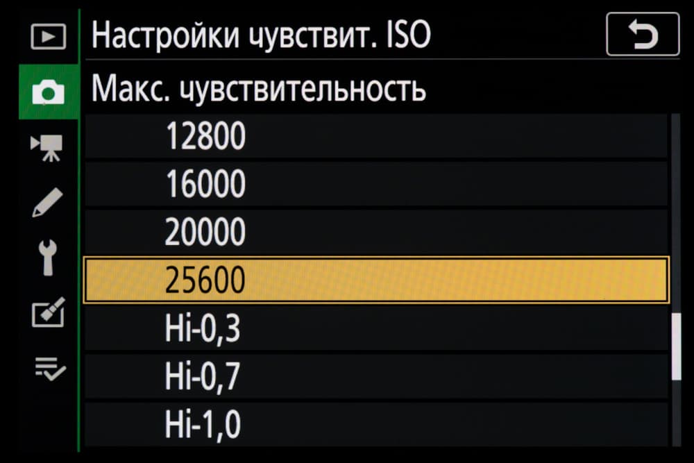 Для оценки работы камеры при разных значениях эквивалентной светочувствительности мы воспользовались объективом Nikkor Z 20mm f/1.8 S, установили значение диафрагмы F2, принудительно переключились на ISO 100, а затем повышали значения светочувствительности на одну ступень от кадра к кадру (ISO 200, 400, 800 и т. д.) до достижения разумно-максимального ISO 25600. Приводим JPEG из камеры без постобработки.
