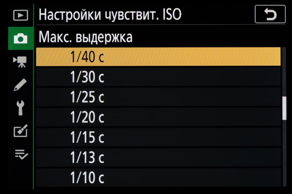 | Скорость затвора | 30—1/8000 с, bulb (выдержка от руки), time (экспозиция по времени) |