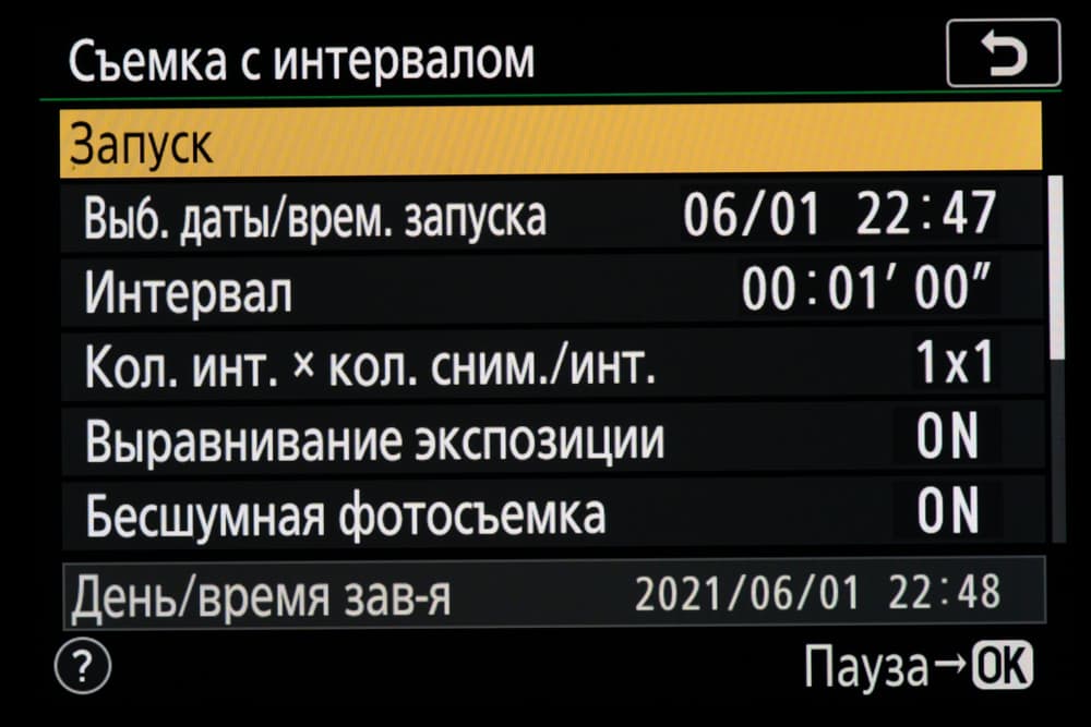 Первый сюжет статичный. Объектив Nikkor Z 14-24mm f/2.8 S, ФР 24 мм. Камера установлена на штативе. Ручная фокусировка на бесконечность.