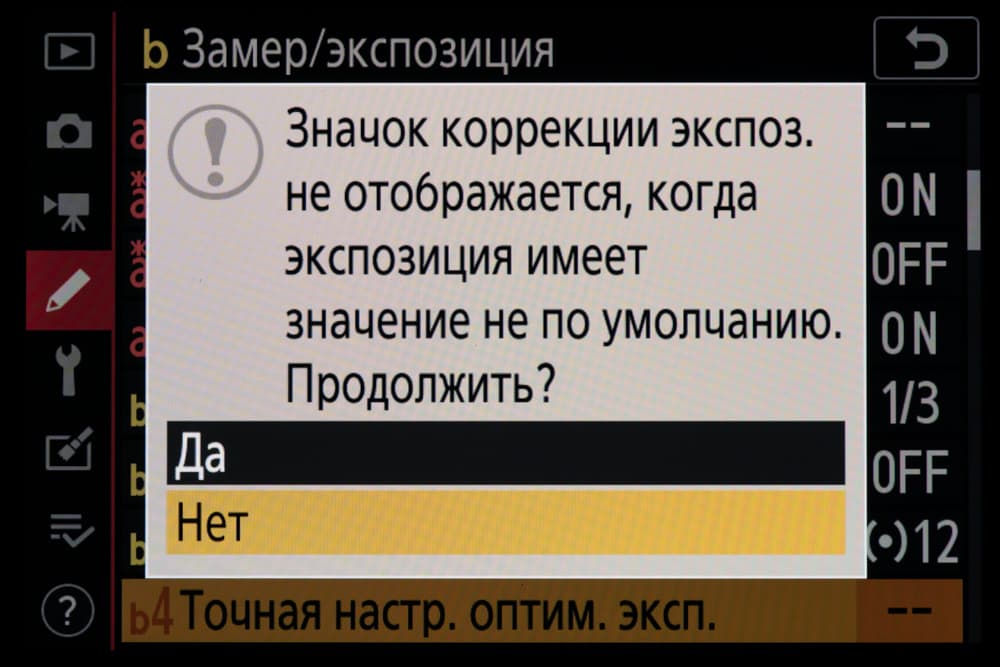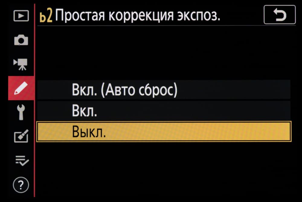 | Экспокоррекция | ±5 EV с шагом ⅓ или ½ EV, доступна в режимах P, S, A, M |