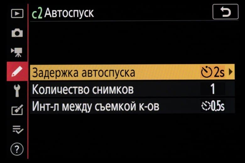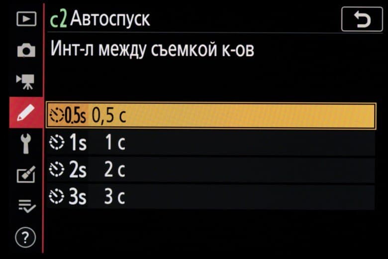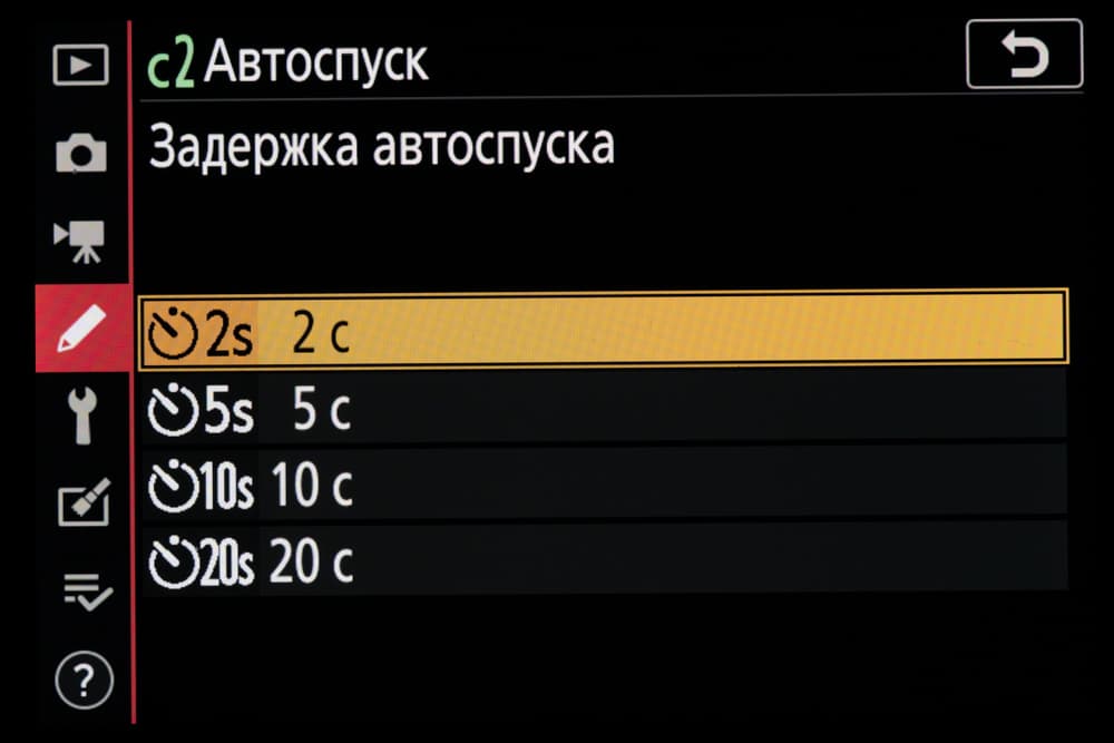| Автоспуск | 20, 10, 5 или 2 с; от 1 до 9 экспозиций с интервалами 0,5, 1, 2 или 3 с |