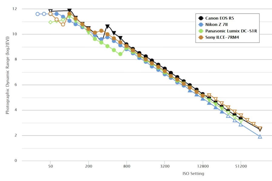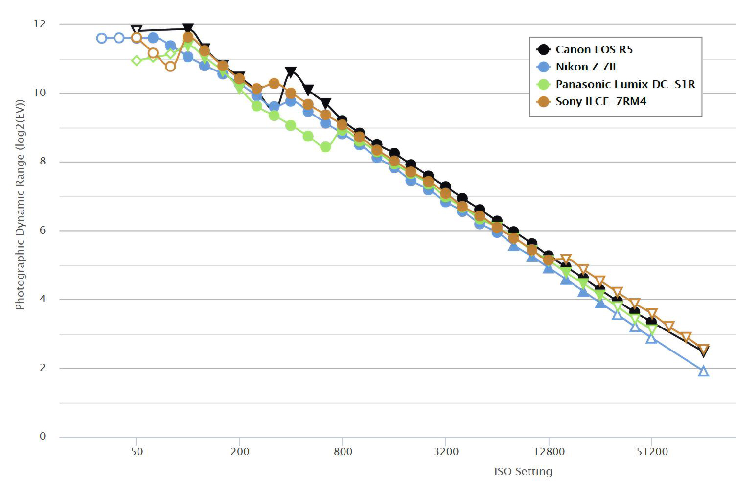 На сайте PhotonsToPhotos можно сравнить ДД выбранных нами конкурирующих моделей беззеркальных камер. О специфике этих измерений мы уже рассказали в начале материала.