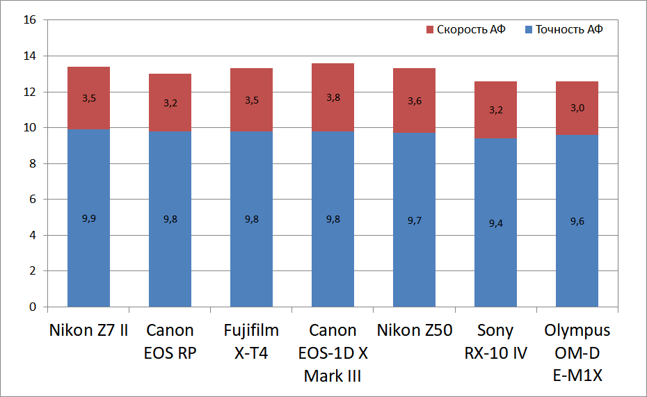 У Nikon Z7 II практически идеальная по точности АФ, как и у Nikon Z6 II, что давно стало нормой для топовых камер, а вот по скорости Z7 II почему-то уступает младшей модели.