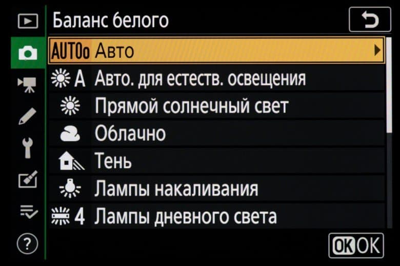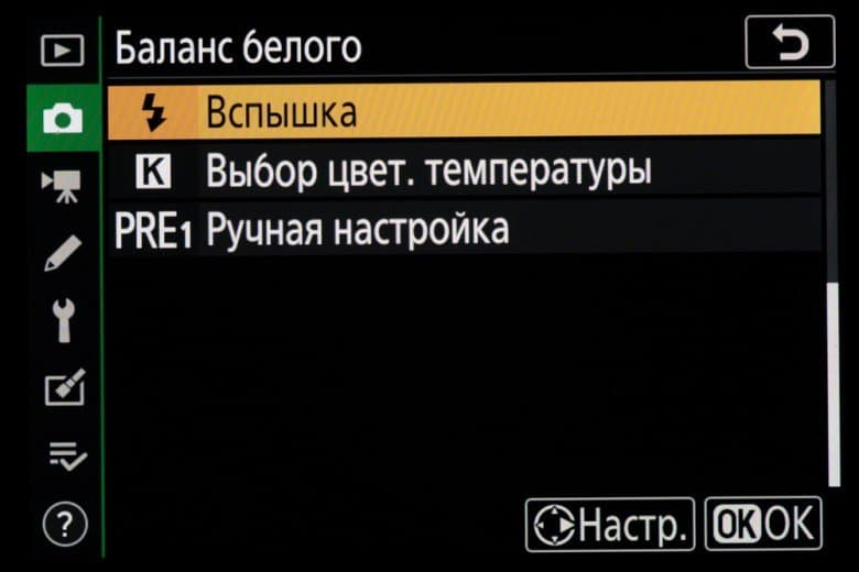 3 Для всех режимов (кроме прямой установки цветовой температуры) возможна тонкая настройка.