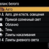 | Баланс белого | авто (3 типа), авто для естественного освещения, солнечный свет, облачно, в тени, лампы накаливания, лампы дневного света (7 типов), вспышка, выбор цветовой температуры (2500—10000 К), ручная установка (6 значений)3 |