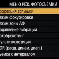 | Автобрекетинг | по экспозиции: 3, 5 кадров с шагом ⅓, ⅔, 1, 2, 3 EV и 7, 9 кадров с шагом ⅓, ⅔, 1 EV; по Active D-Lighting; по балансу белого |