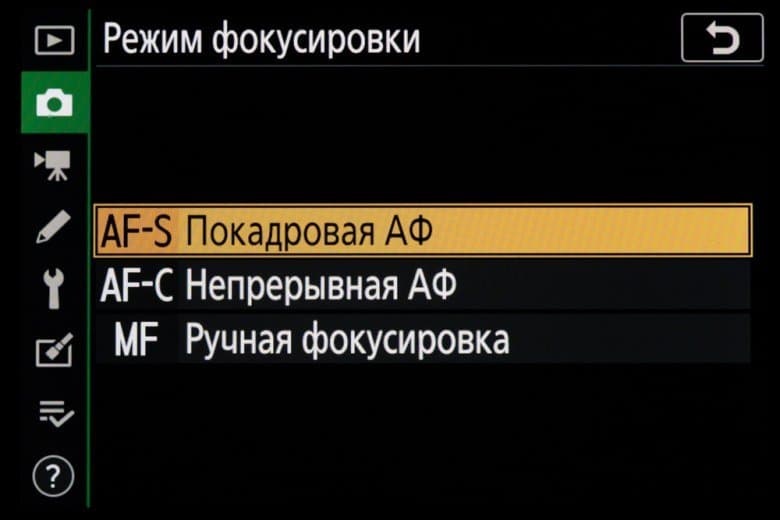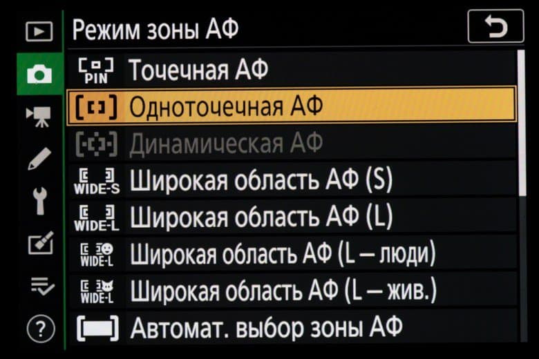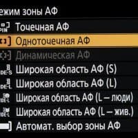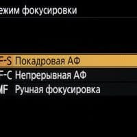 - однокадровая или следящая автоматическая фокусировка (в зависимости от динамики сцены),