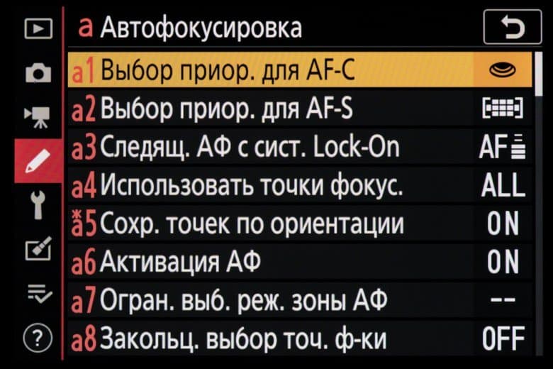 | Режимы фокусировки | однокадровая следящая (AF-S), непрерывная следящая (AF-C), постоянная (AF-F)5, прогнозирующая следящая, ручная (M) |