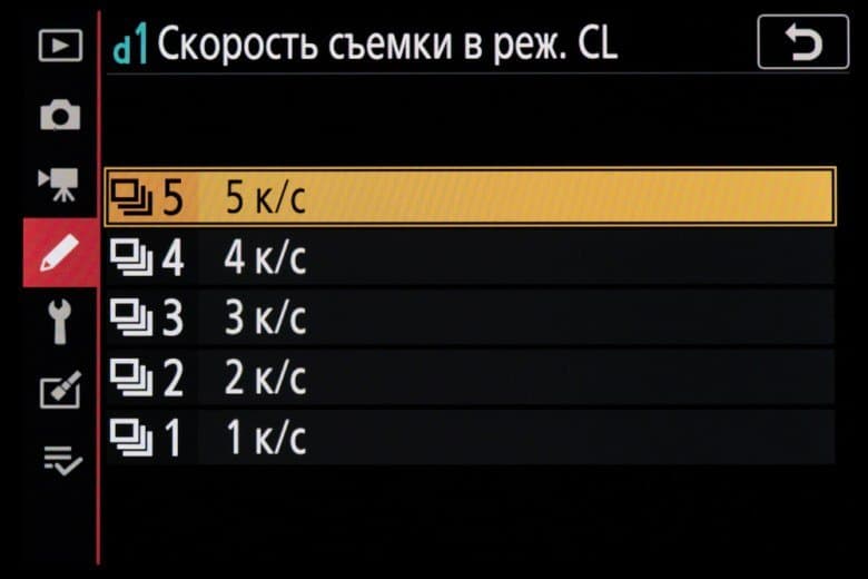 В таблице приведены значения средней скорости съемки для разных режимов. Первой скоростью назовем ту, с которой серийная съемка стартует. Ее предел — время, после которого съемка замедляется и продолжается со второй скоростью. Единицы измерения — кадры в секунду и секунды соответственно. Символ бесконечности означает, что при съемке ста кадров скорость не изменилась.