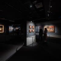 Развеска экспозиции выставки довольно оригинальная, если учесть, что зал расположен в подвале центра и не имеет окон для естественного освещения картин. Впрочем, организация подсветки достаточно продуманная.
