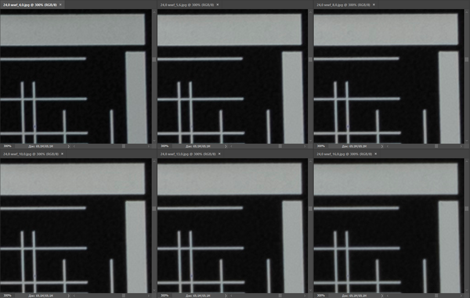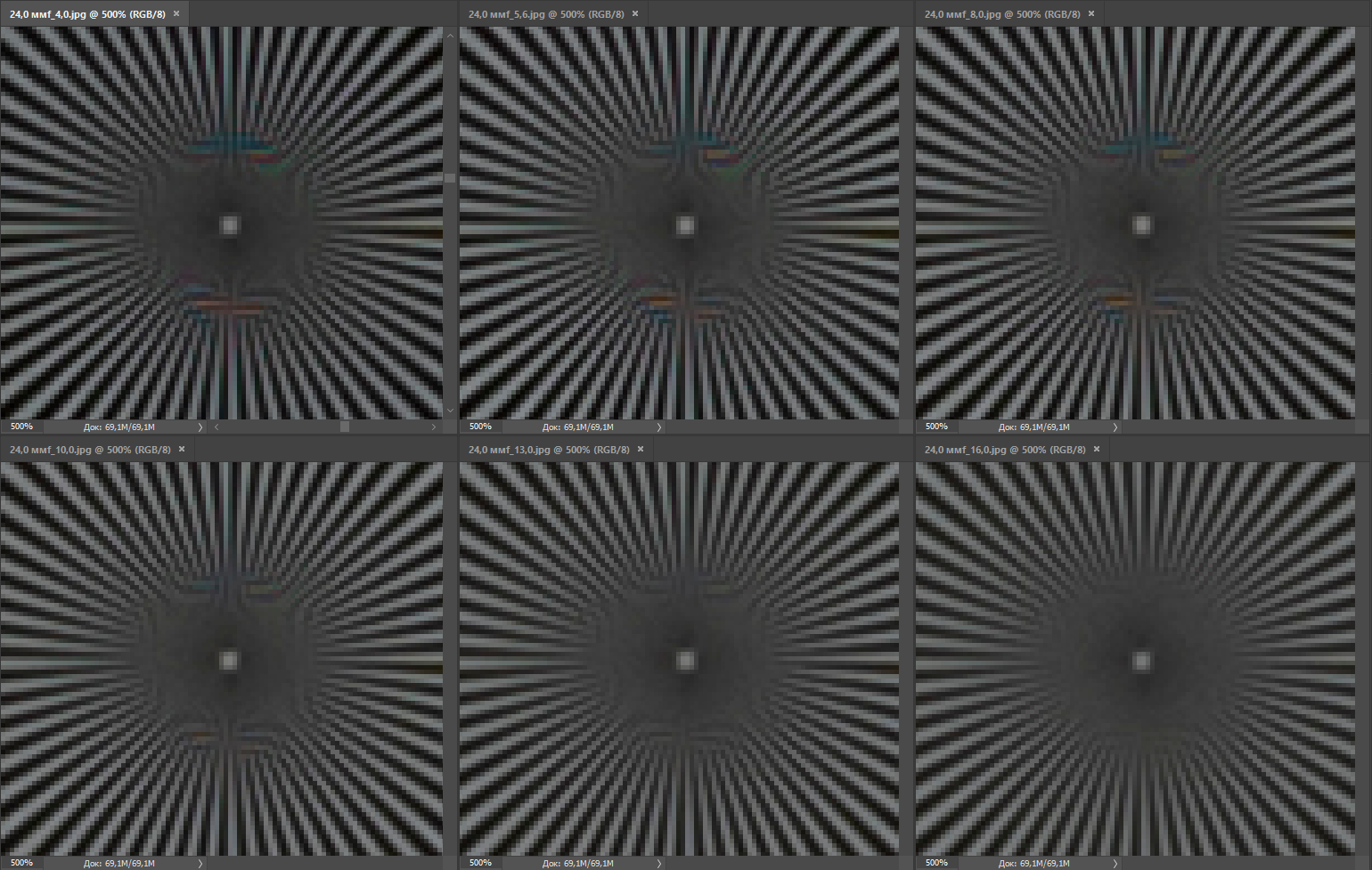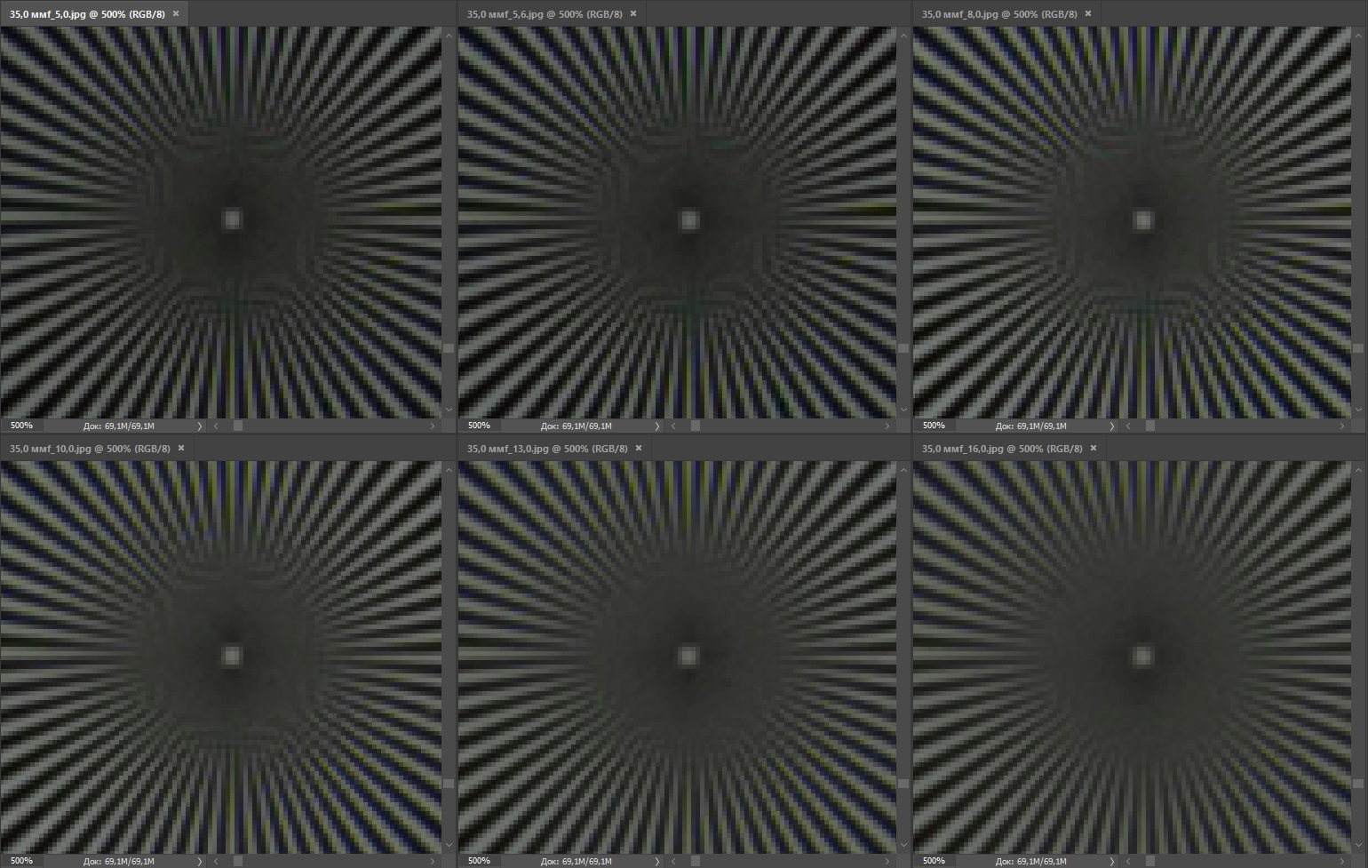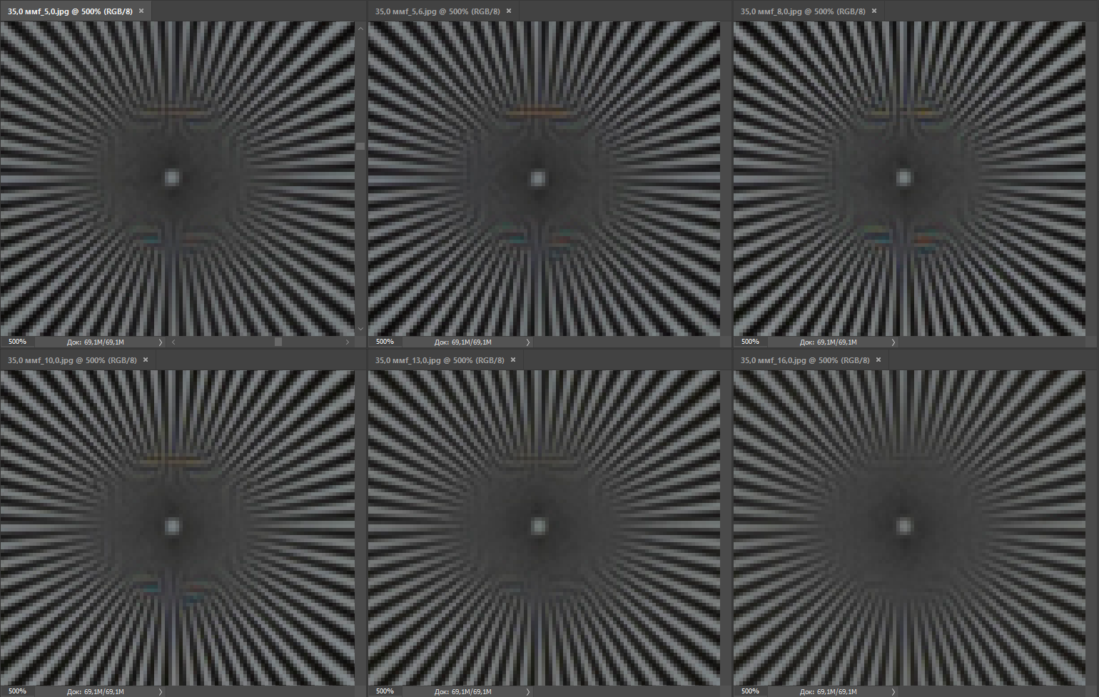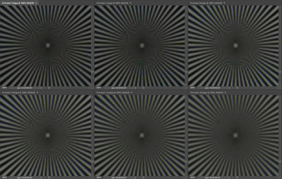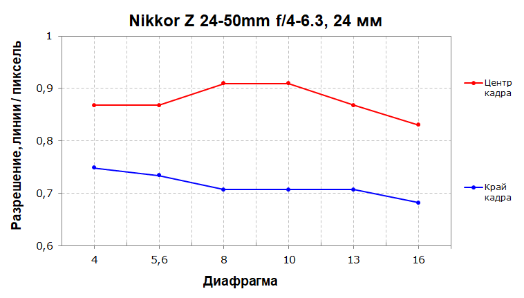 | Разрешение, центр кадра | Разрешение, край кадра |