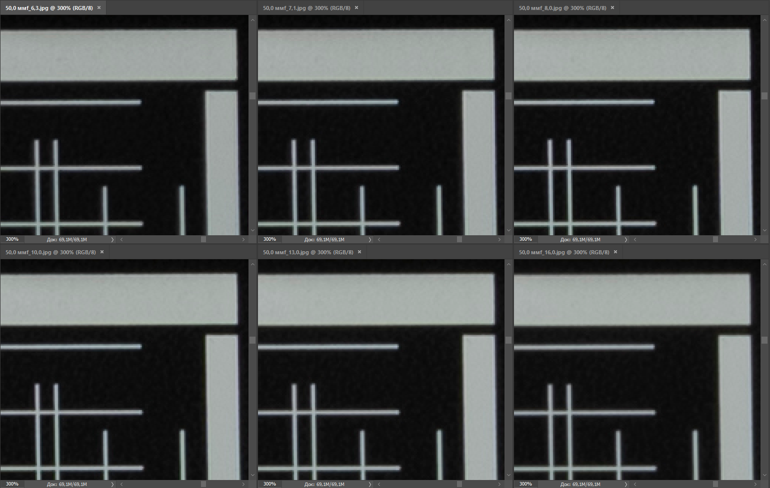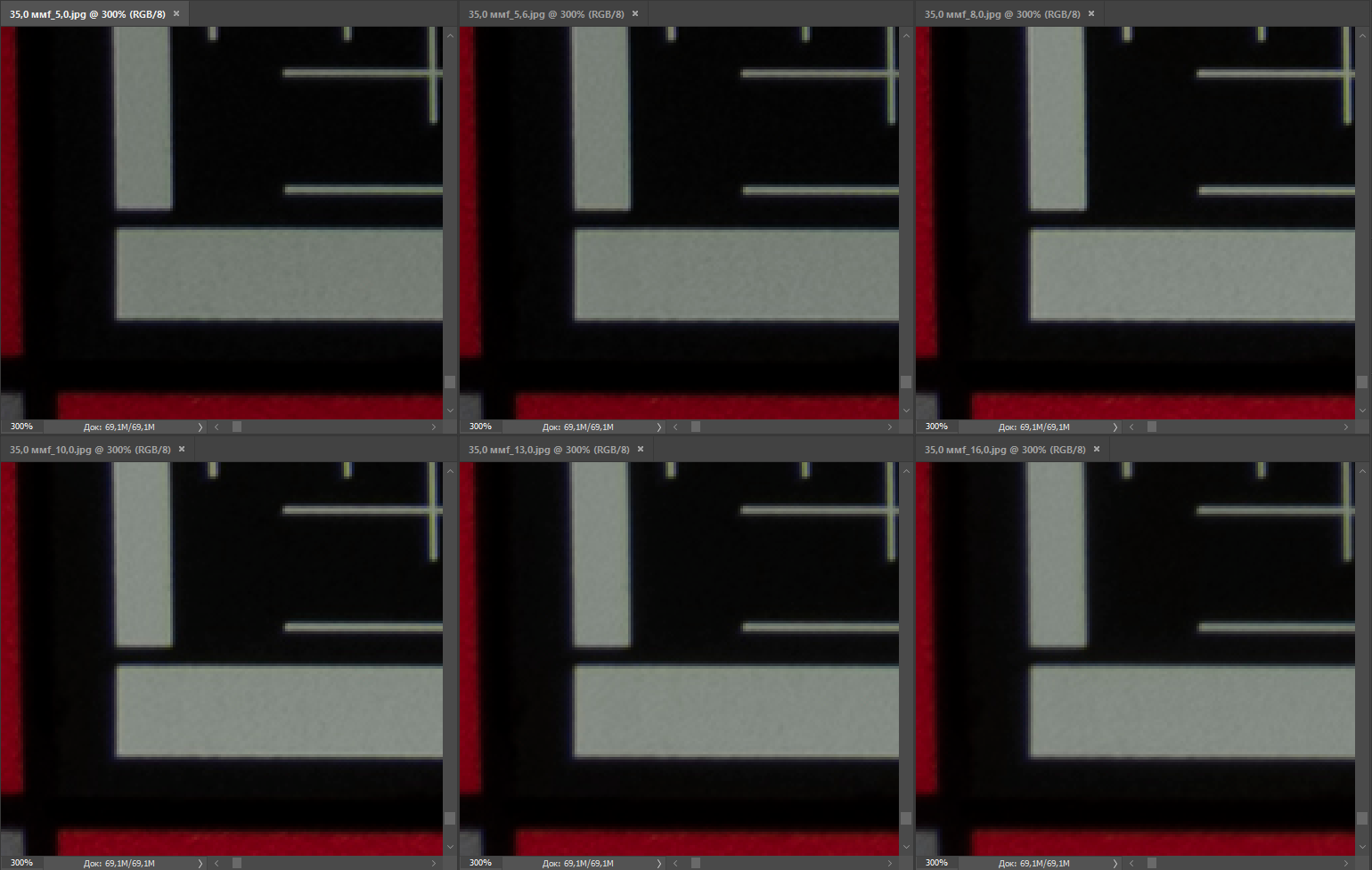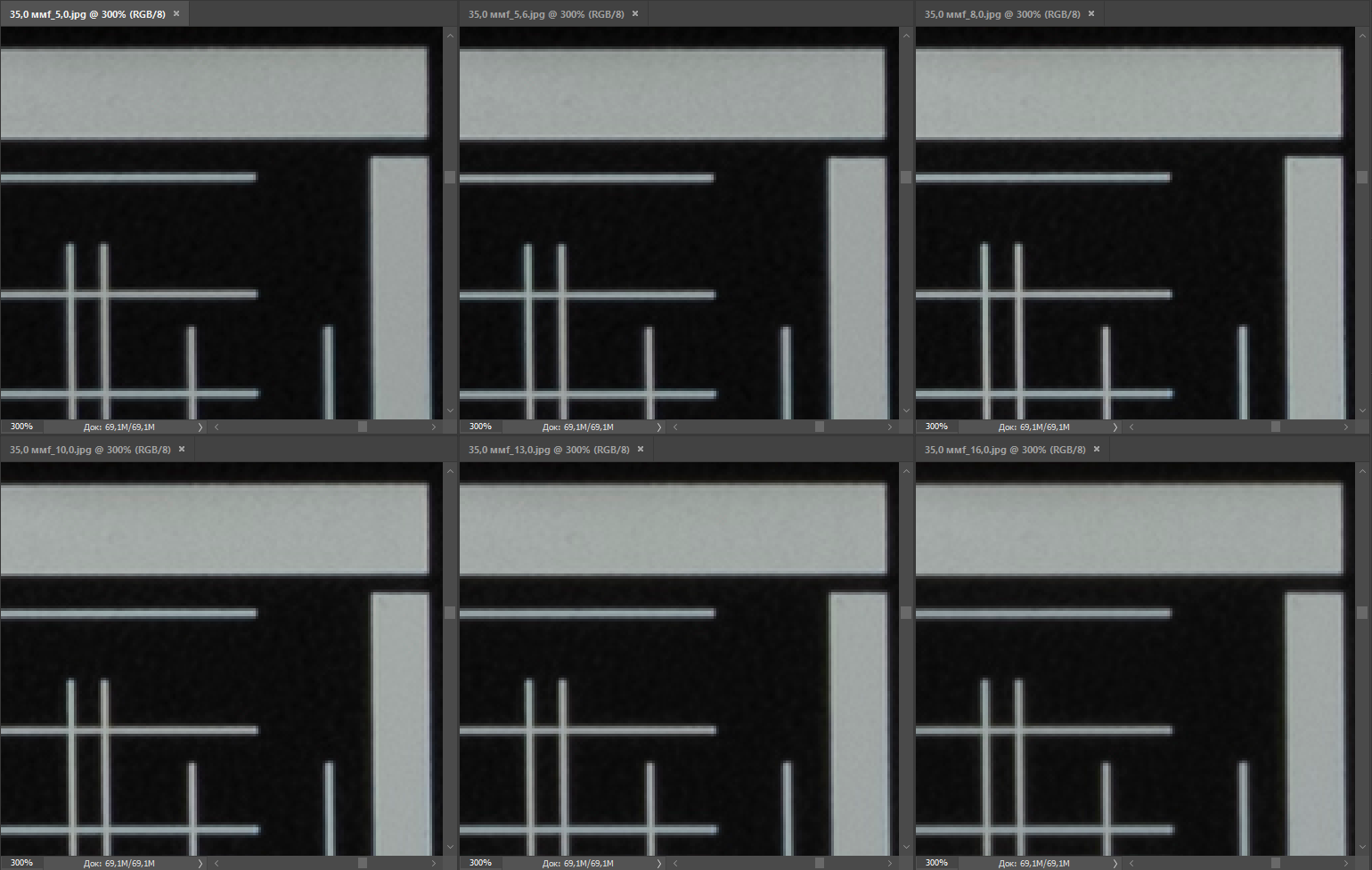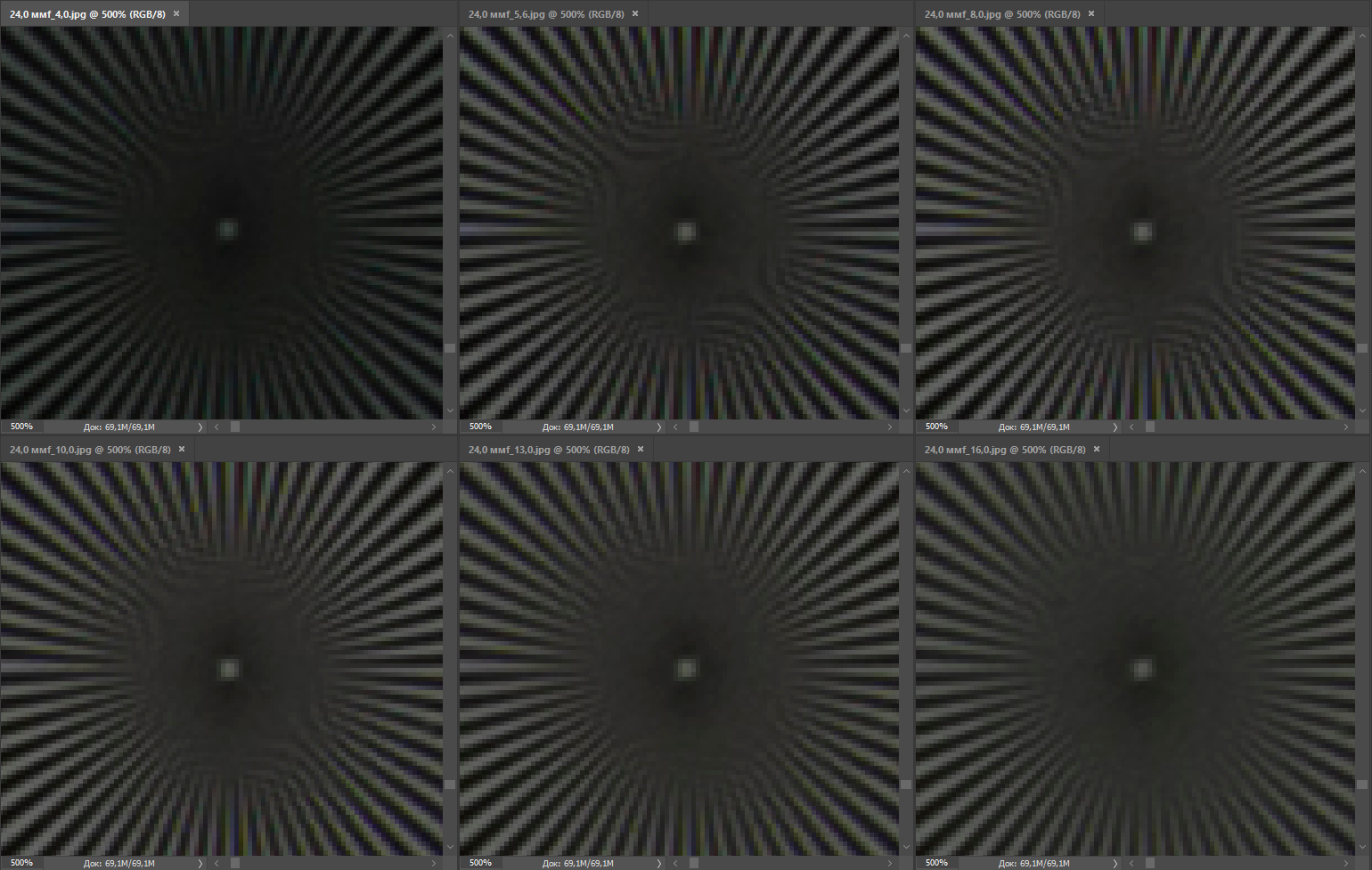 | Разрешение, центр кадра | Разрешение, край кадра |