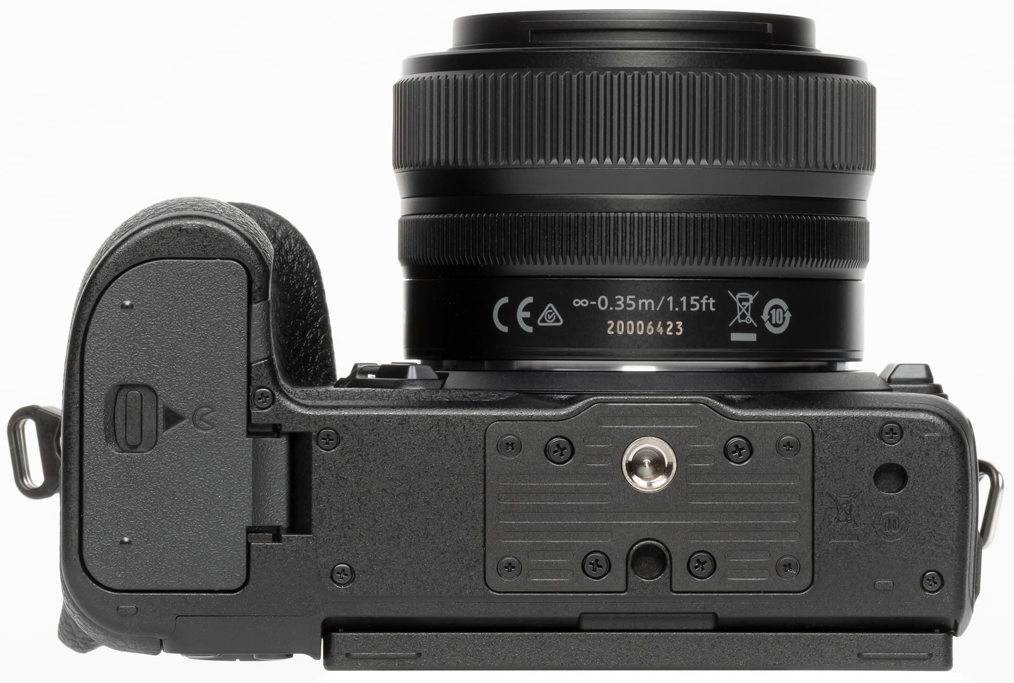 При взгляде сверху видно, что левая сторона камеры опустела, и селектор режимов съемки переместился вправо. На наш взгляд, это удобнее с точки зрения эргономики, так как позволяет управлять съемкой при помощи одной правой руки, которая удерживает камеру.