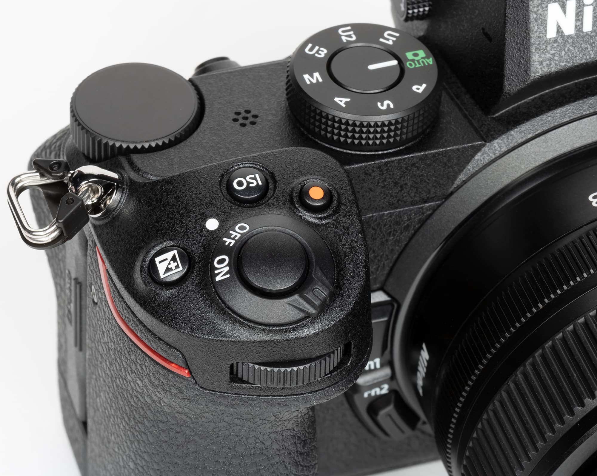 Около выключателя питания расположены три кнопки: ввода экспокоррекции, выбора значений ISO и активации видеозаписи.
