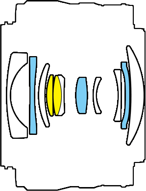 | Оптическая схема | 11 линз в 10 группах, включая 2 элемента из сверхнизкодисперсионного стекла (ED) и 3 асферических |