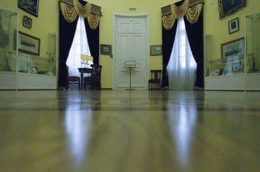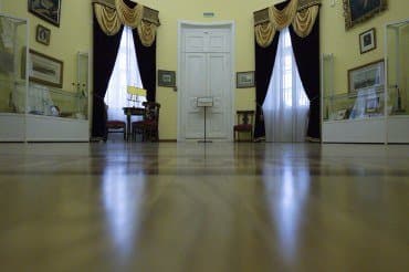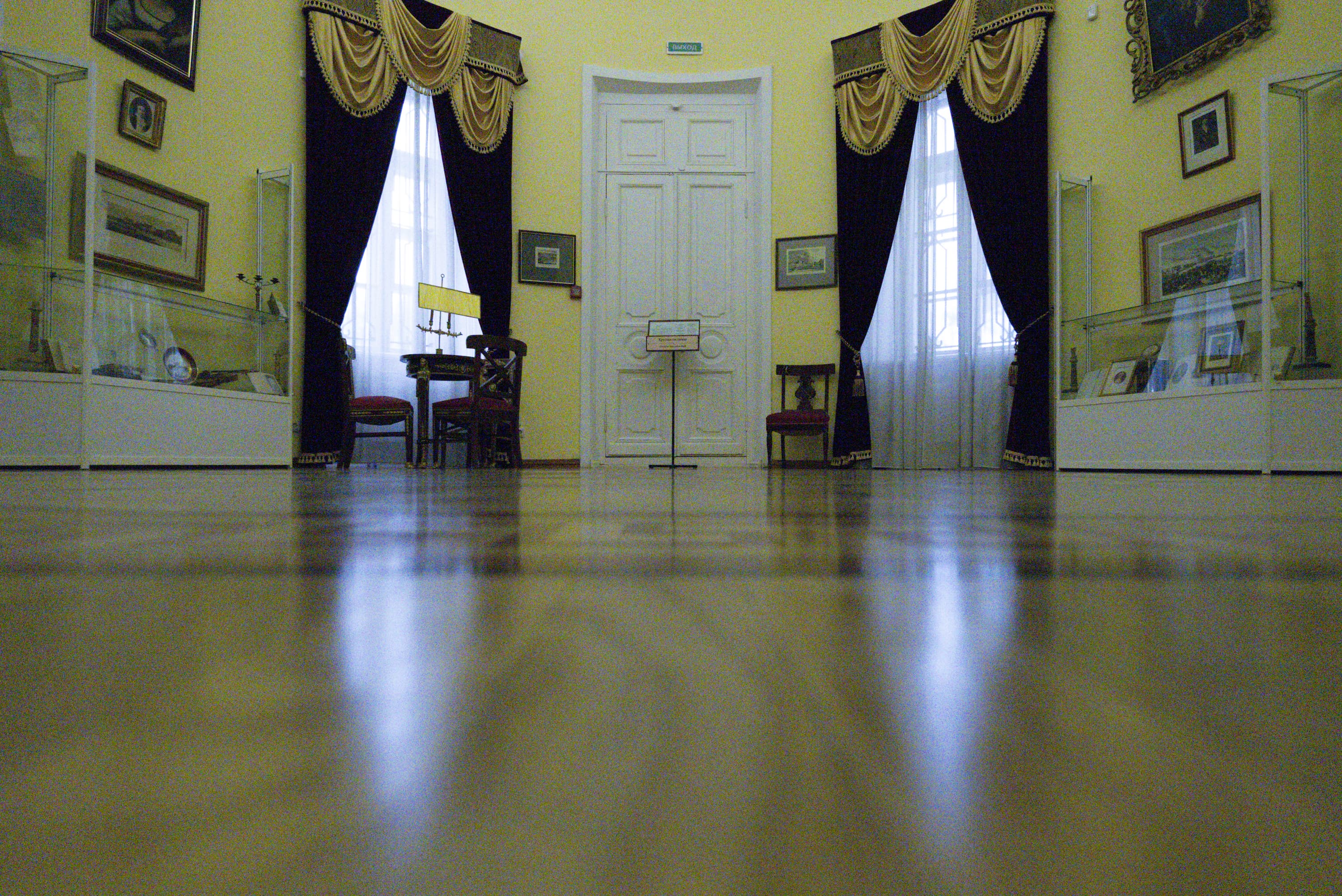 Для проверки эффективности внутрикамерной стабилизации в условиях практического фотографирования мы предприняли съемку в библиотеки дома героя Отечественной войны 1812 г., московского генерал-губернатора князя Дмитрия Голицына в Вязёмах (ныне подмосковный Пушкинский заповедник).
