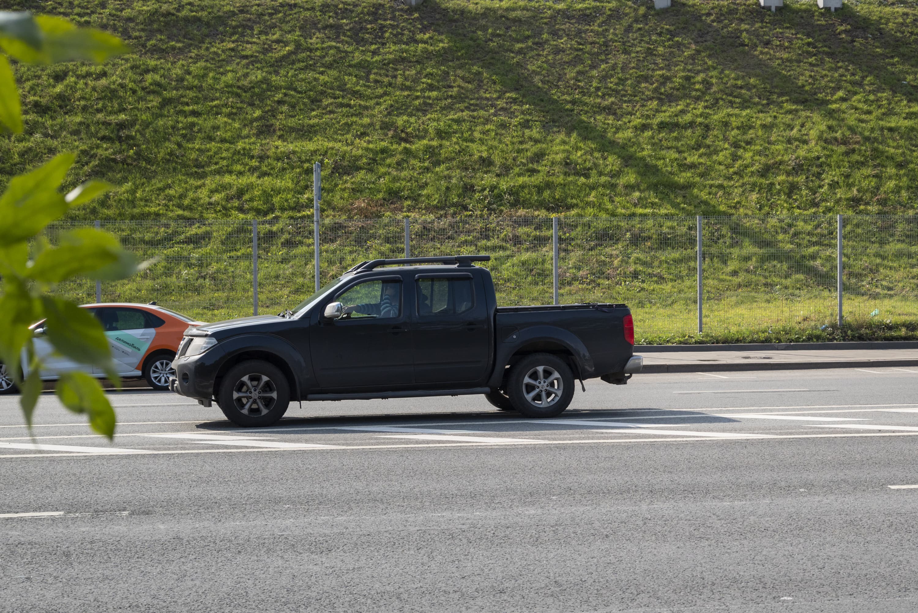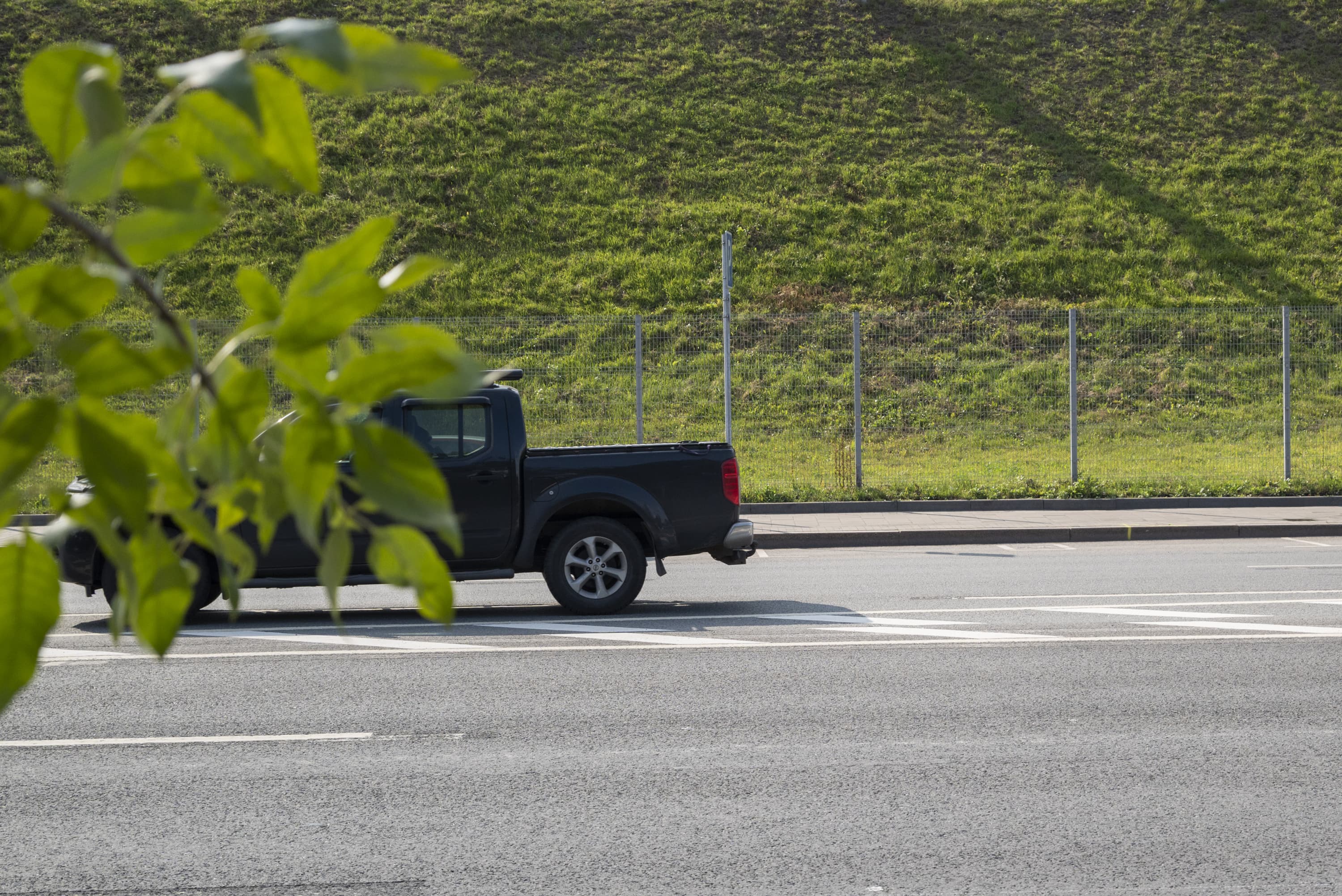 Листья дерева перекрывают движущийся автомобиль, находящийся в зоне резкости, но АФ продолжает фокусироваться на нем. Брака нет. Выход годных 100%