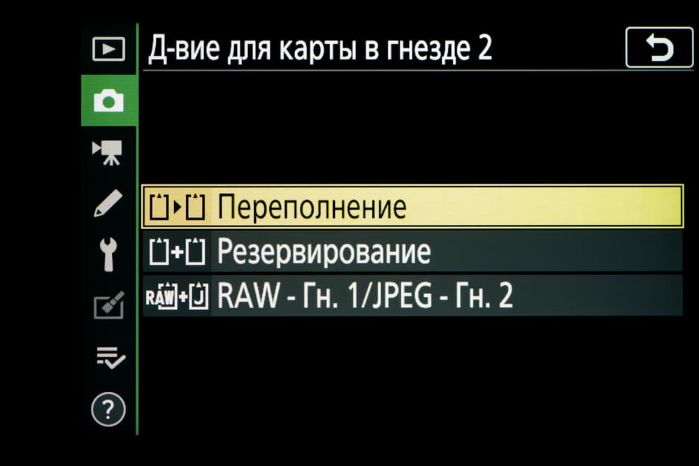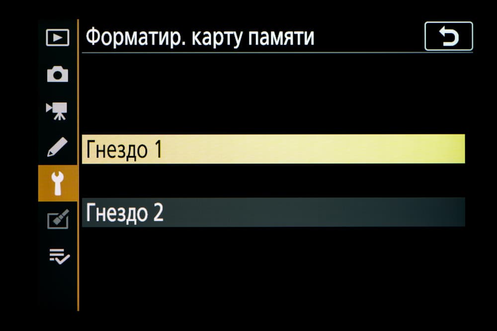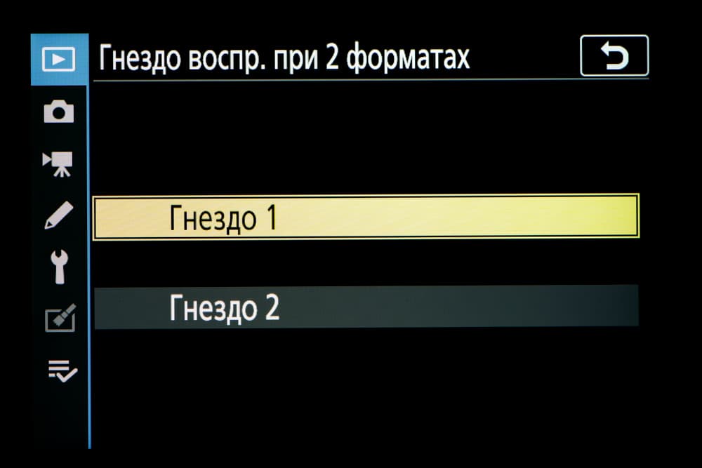 В отличие от большинства других любительских аппаратов Nikon Z5 располагает не одним, а двумя слотами для карт памяти распространенного типа SD/SDHC/SDXC, причем каждый слот поддерживает высокоскоростной интерфейс UHS-II.