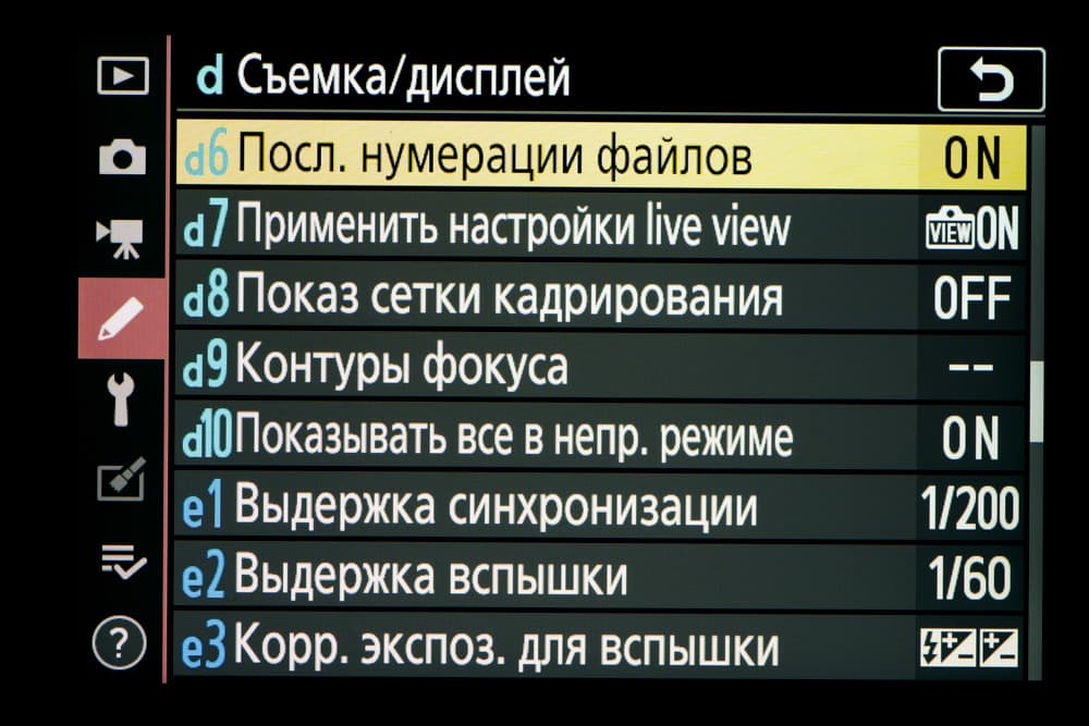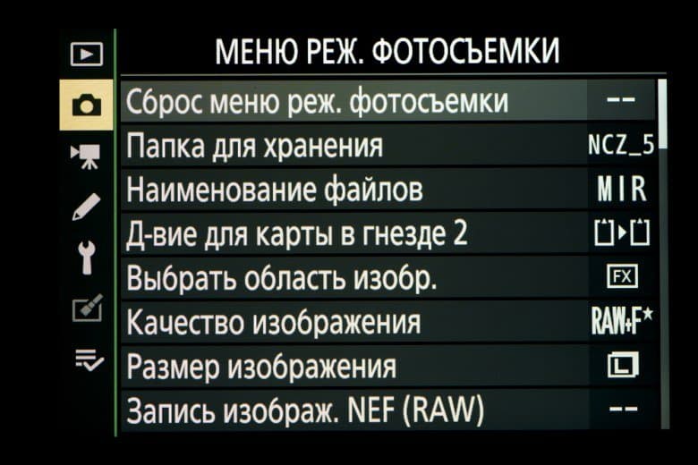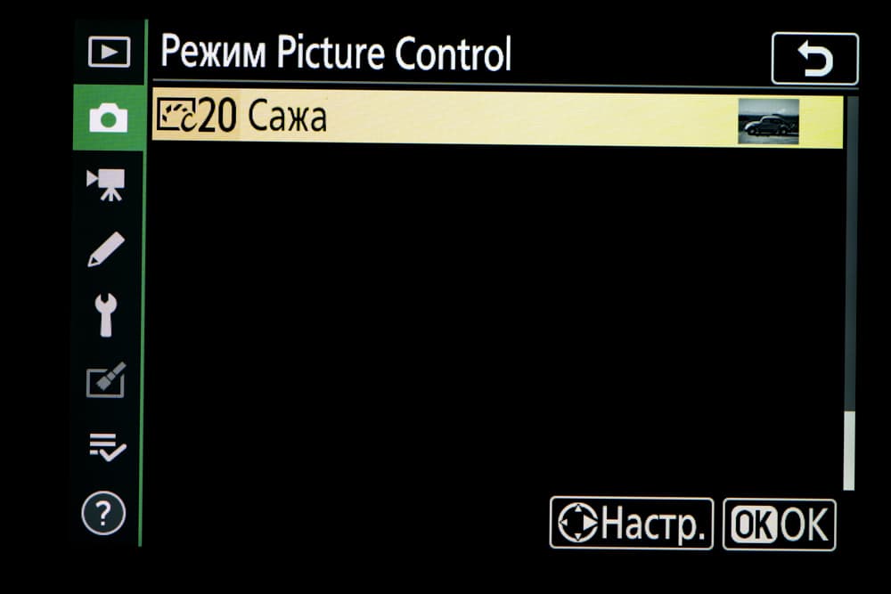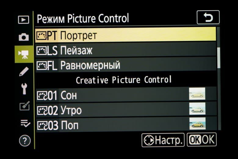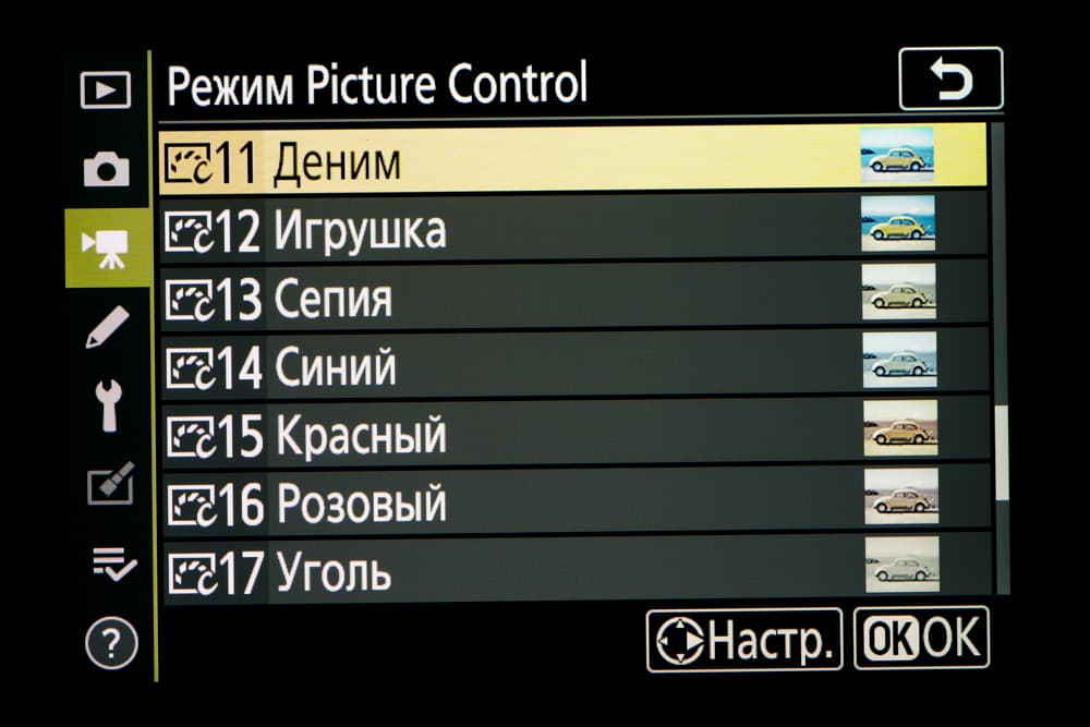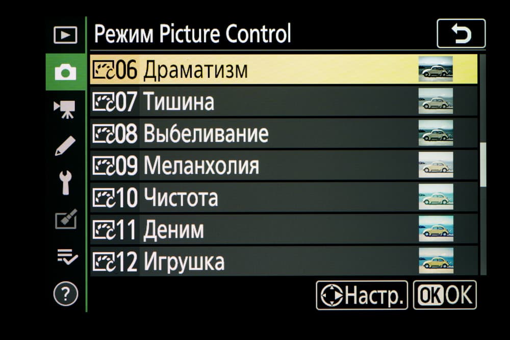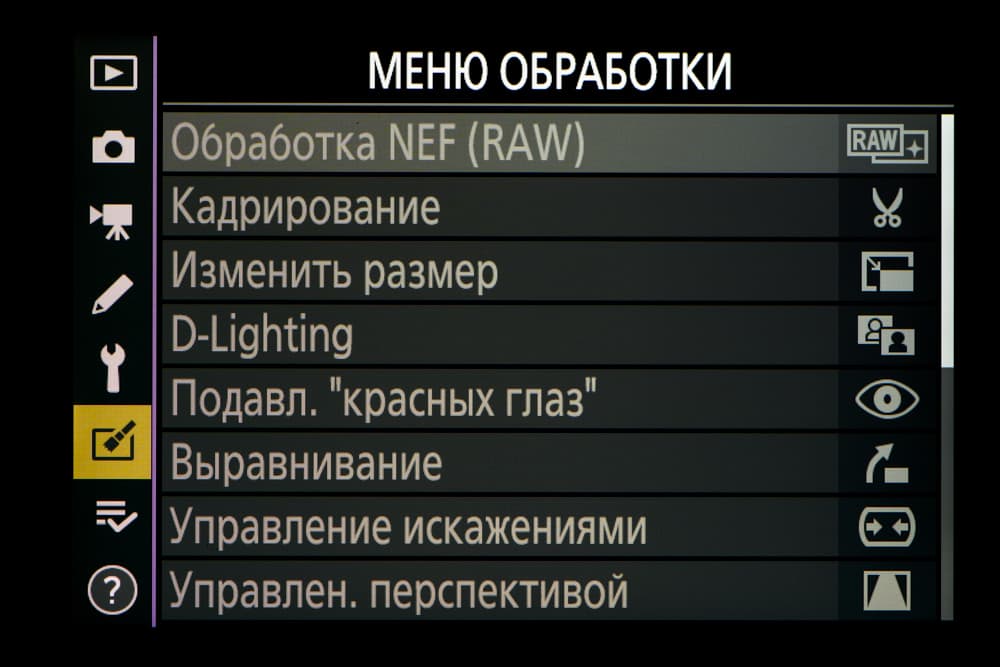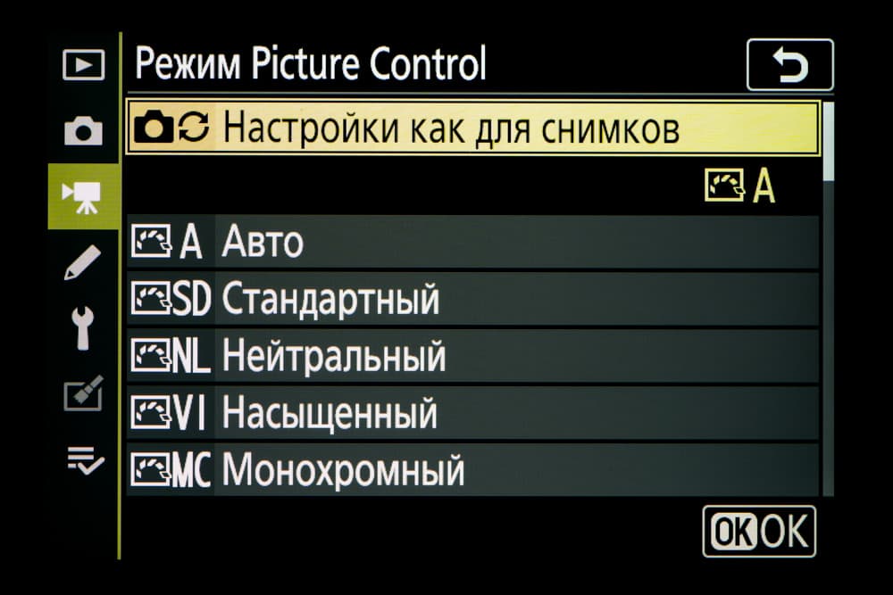| Внутрикамерная обработка изображений (Picture Control) | базовые режима: «Авто», «Стандартный», «Нейтральный», «Насыщенный», «Монохромный», «Портрет», «Пейзаж» и «Равномерный»; творческие режимы: «Сон», «Утро», «Поп», «Воскресенье», «Мрачность», «Драматичность», «Тишина», «Выбеливание», «Меланхолия», «Чистота», «Деним», «Игрушка», «Сепия», «Синий», «Красный», «Розовый», «Уголь», «Графит», «Два тона», «Сажа» |